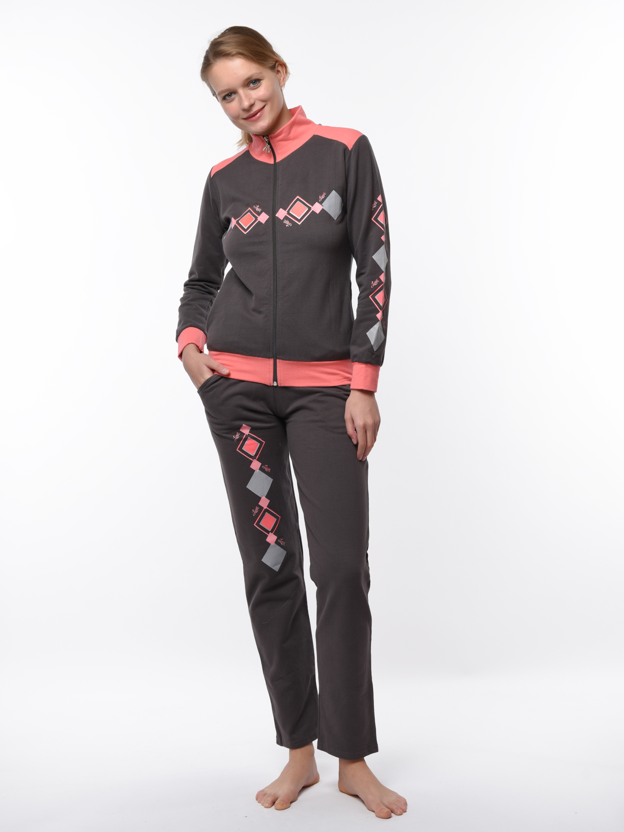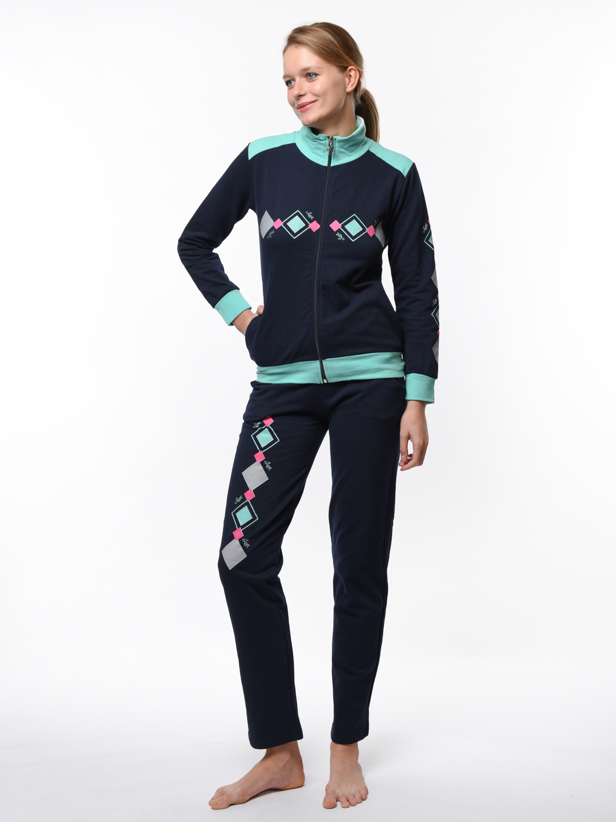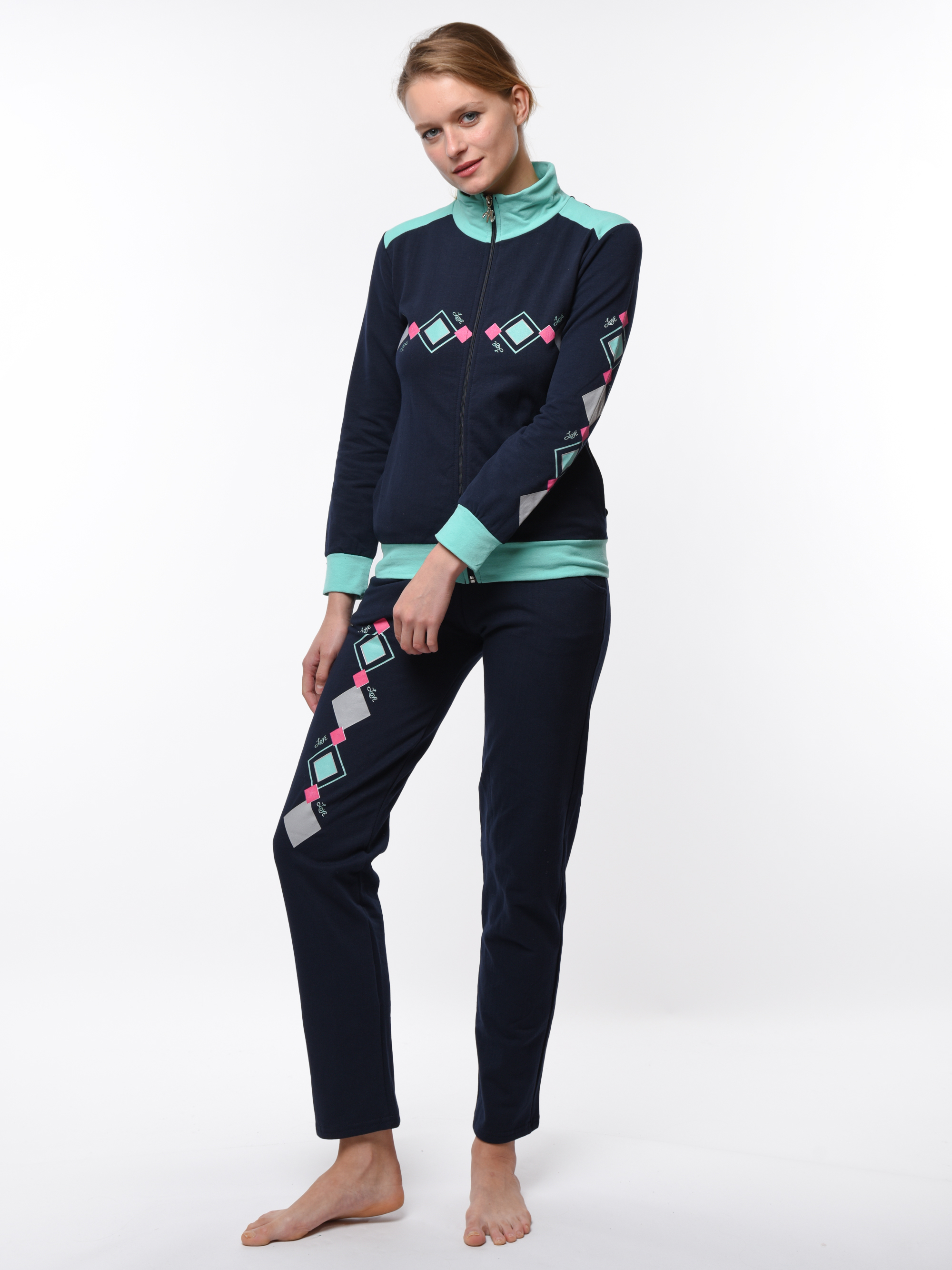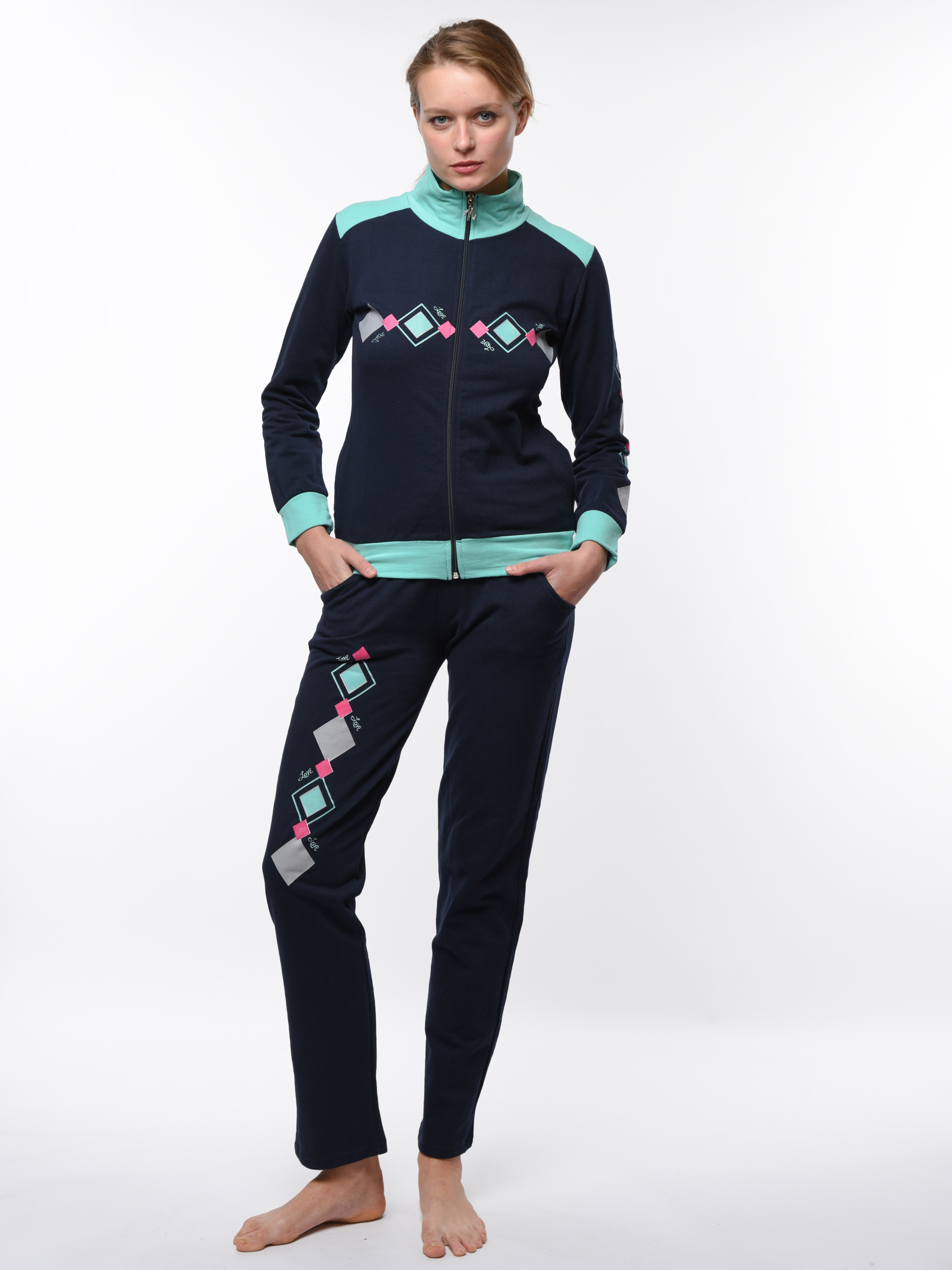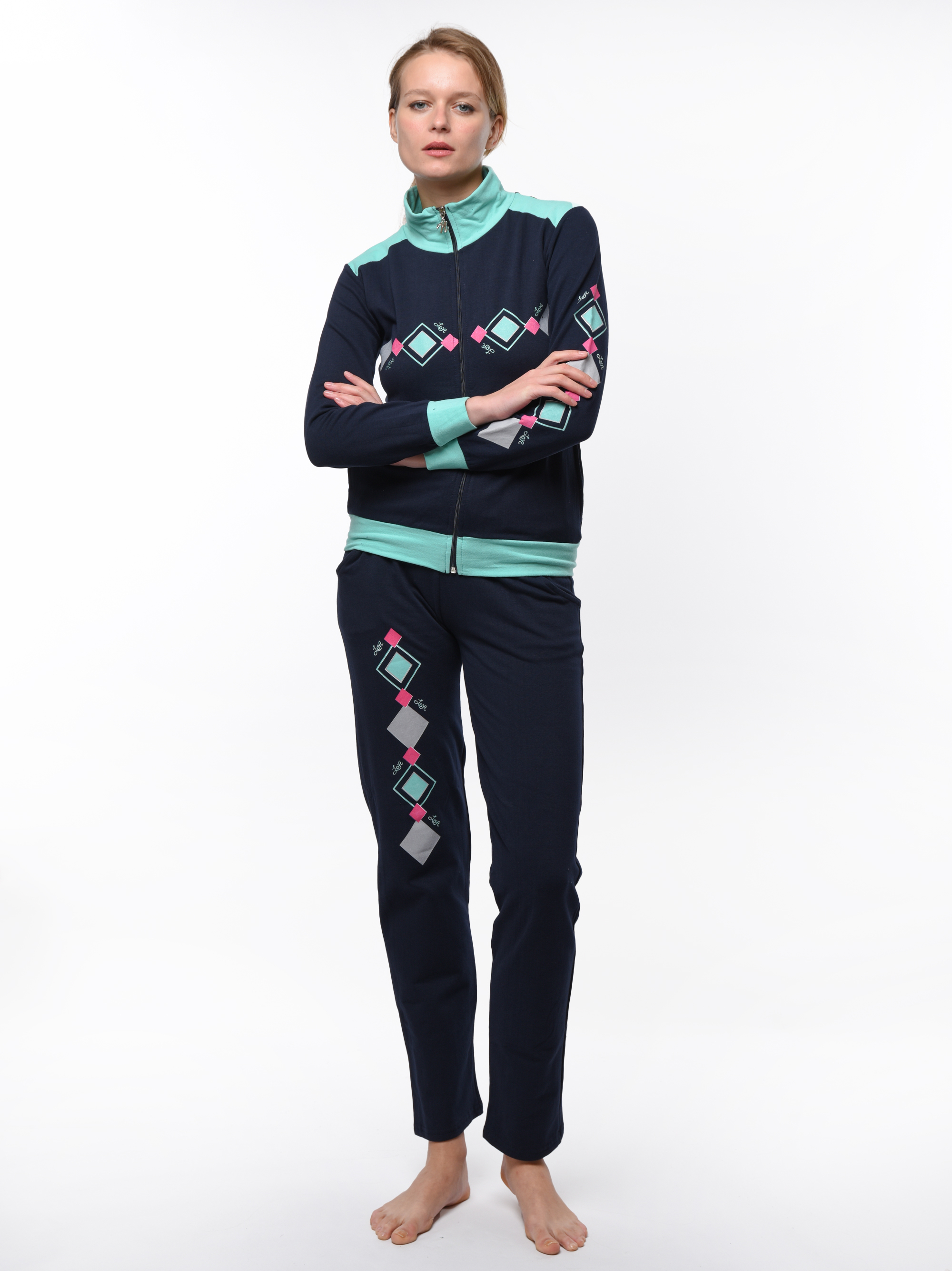 Откройте для себя идеальный женский костюм! Простой дизайн, универсальность и стиль – ваш верный спутник во всех ситуациях. Однотонный джемпер с контрастными манжетами и ярким принтом, гармоничные линии подчеркивают элегантность. Комфортная куртка на молнии сочетается со свободными брюками. Ткань сохраняет свежесть и форму даже после множества стирок (рекомендованная температура - 30°C). Выбор очевиден!