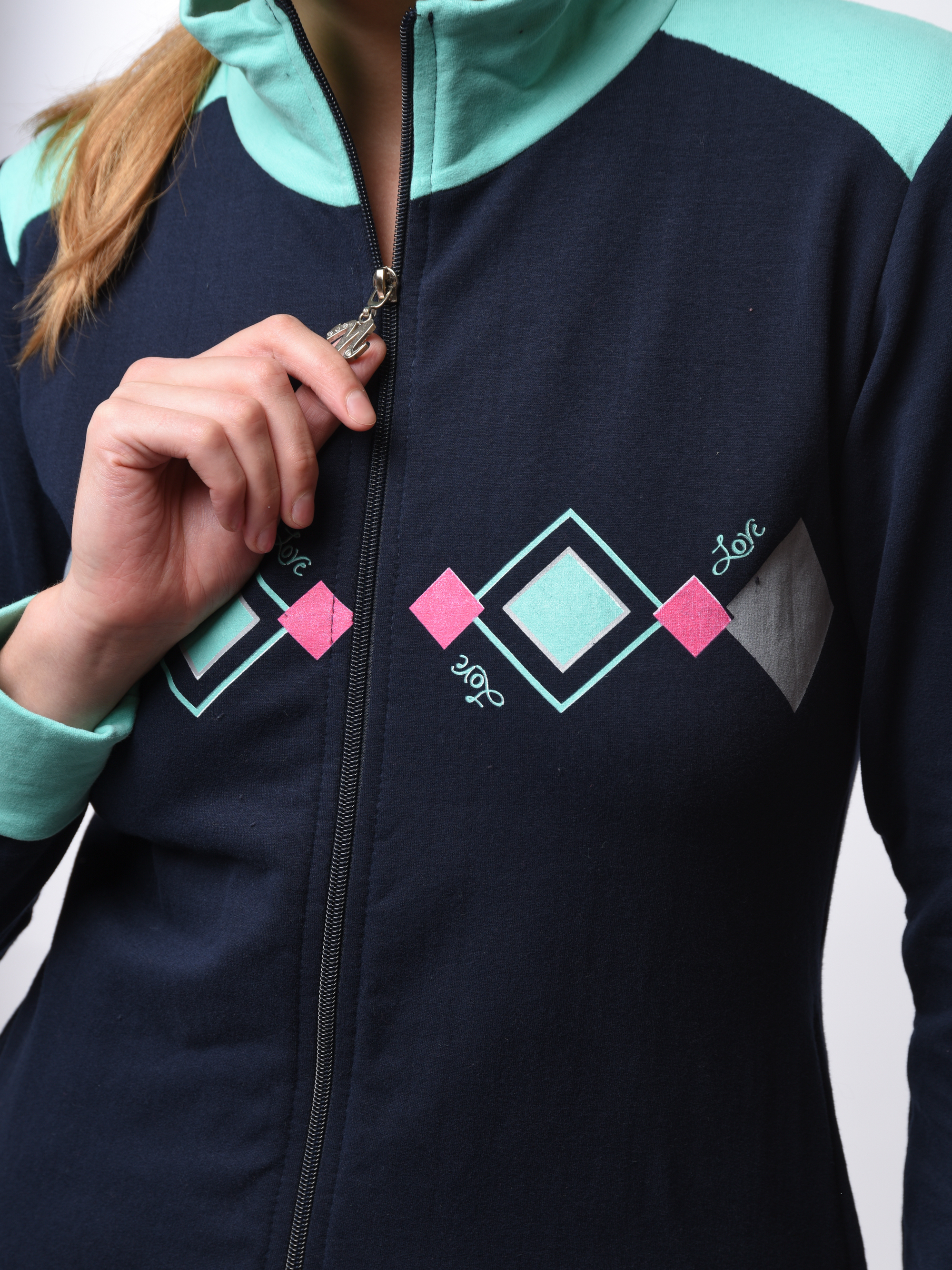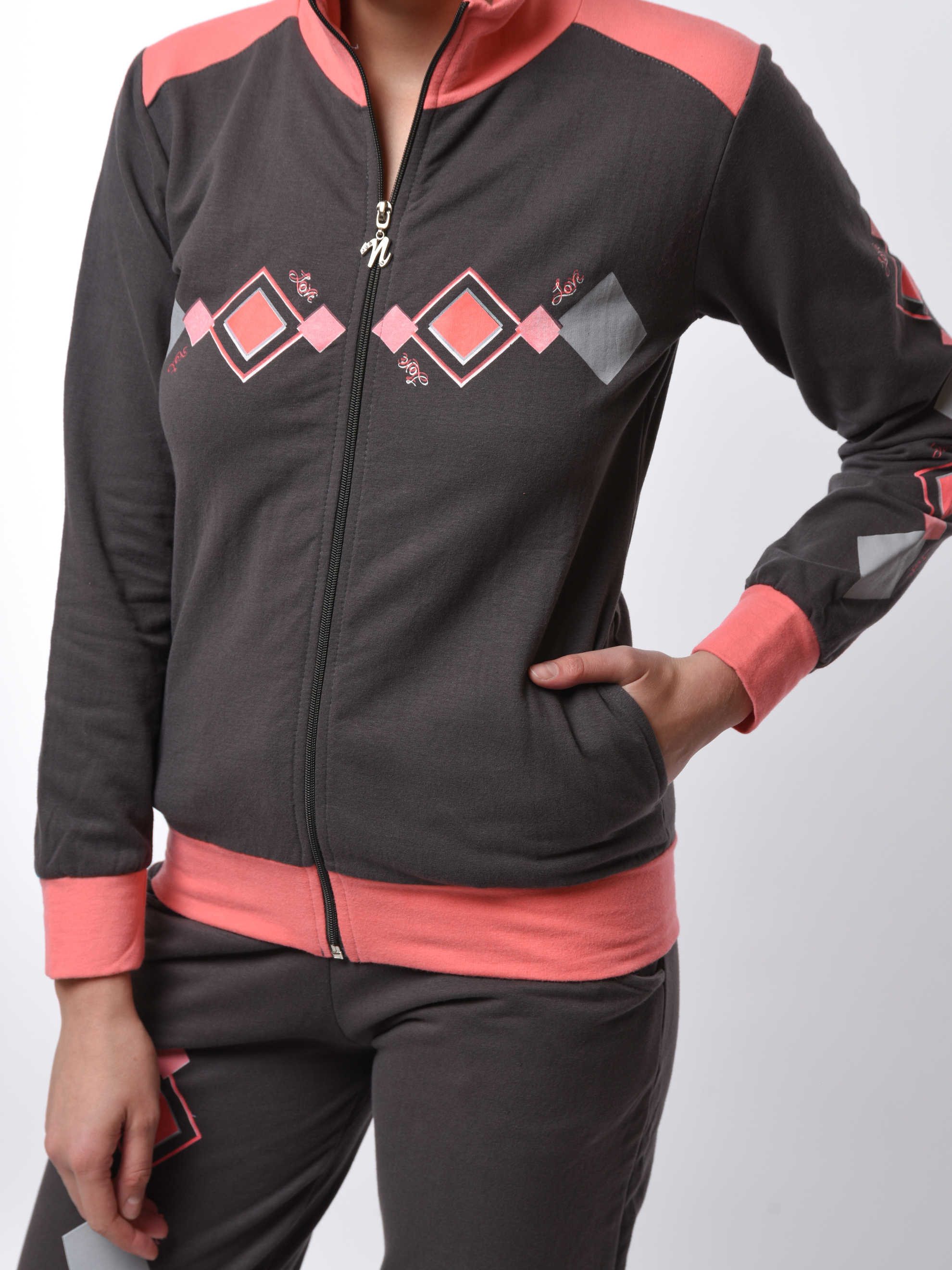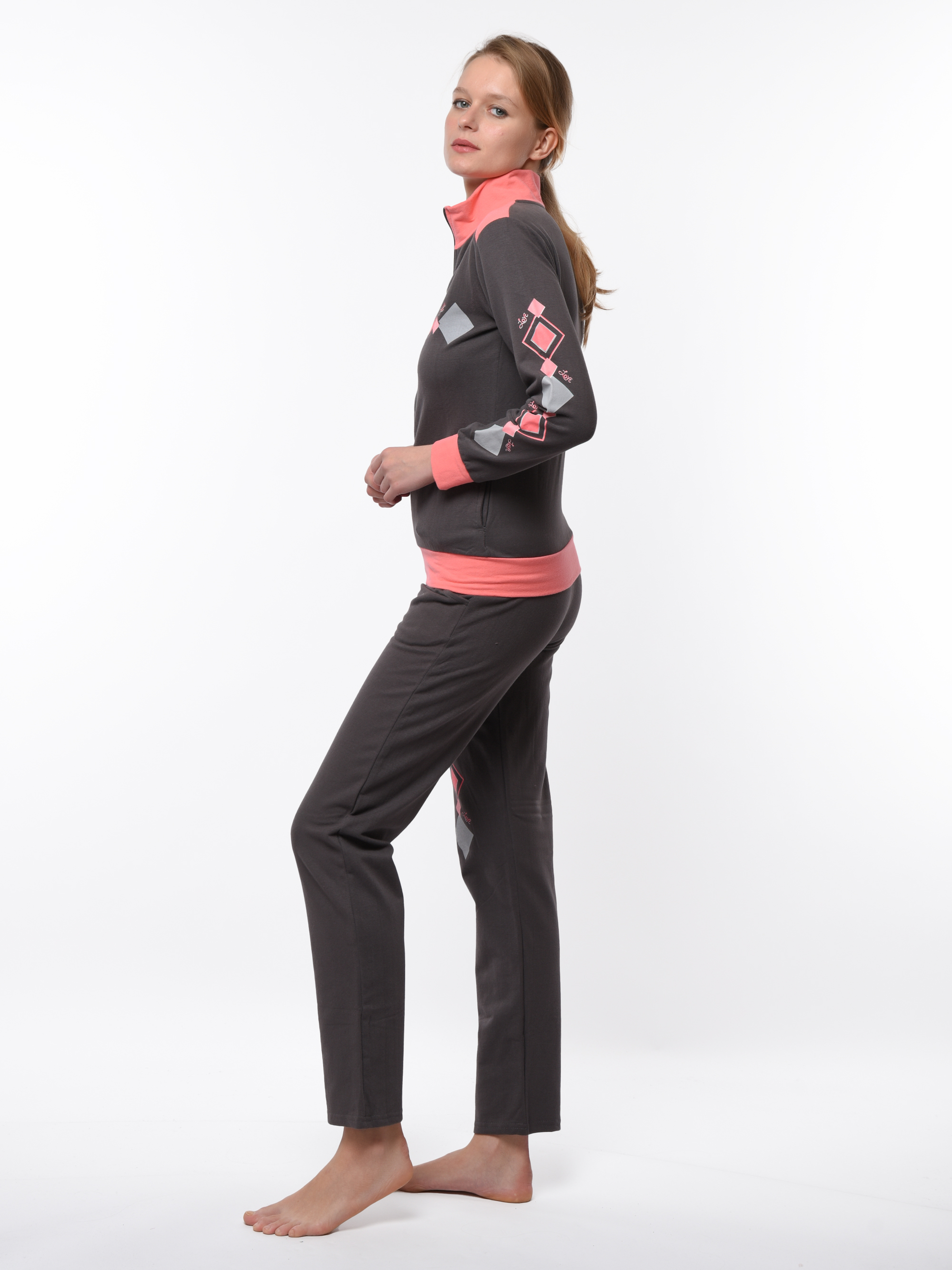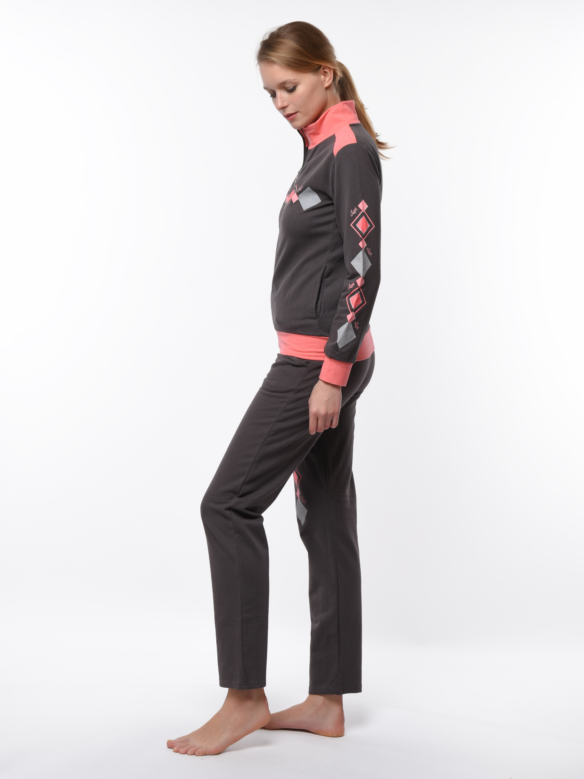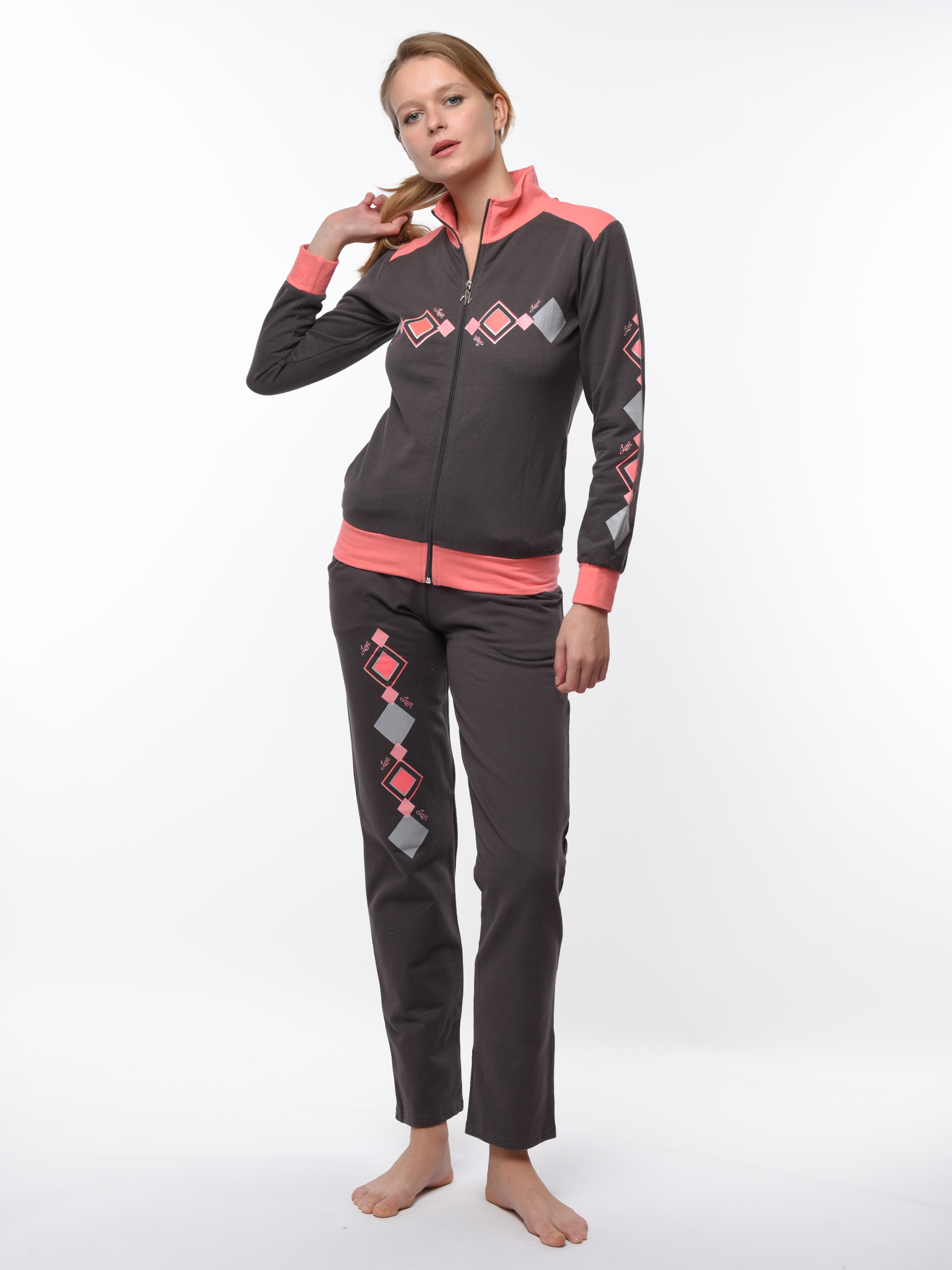 Откройте для себя идеальный женский костюм! Простой дизайн, универсальность и стиль – ваш верный спутник во всех ситуациях. Однотонный джемпер с контрастными манжетами и ярким принтом, гармоничные линии подчеркивают элегантность. Комфортная куртка на молнии сочетается со свободными брюками. Ткань сохраняет свежесть и форму даже после множества стирок (рекомендованная температура - 30°C). Выбор очевиден!
