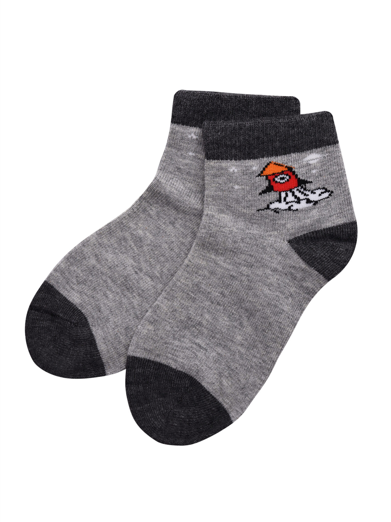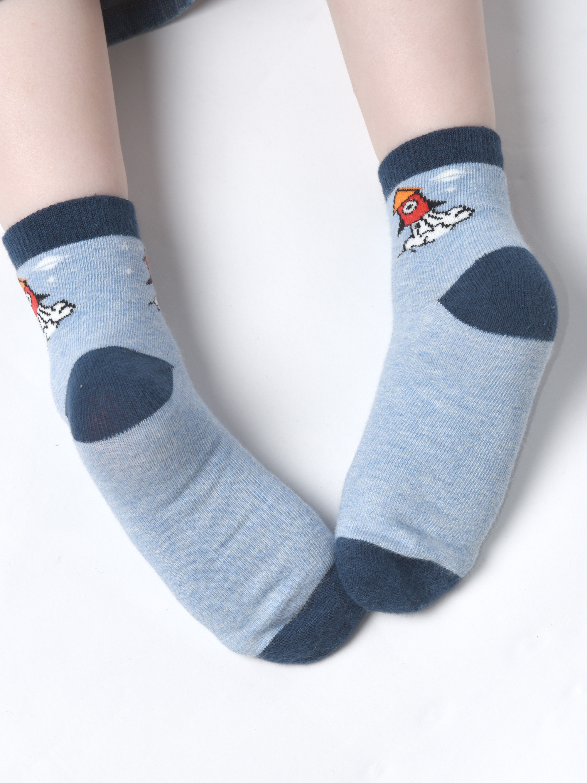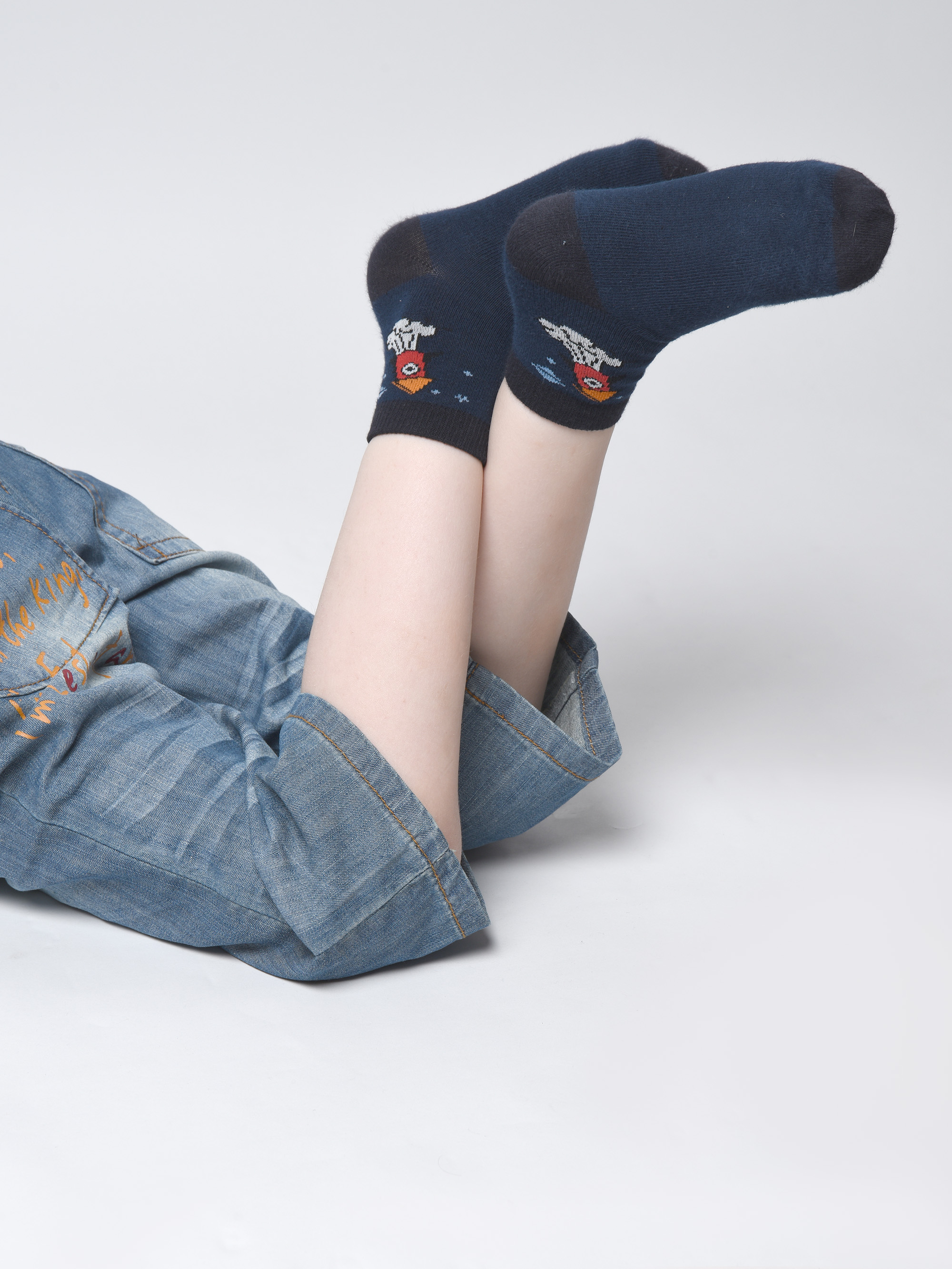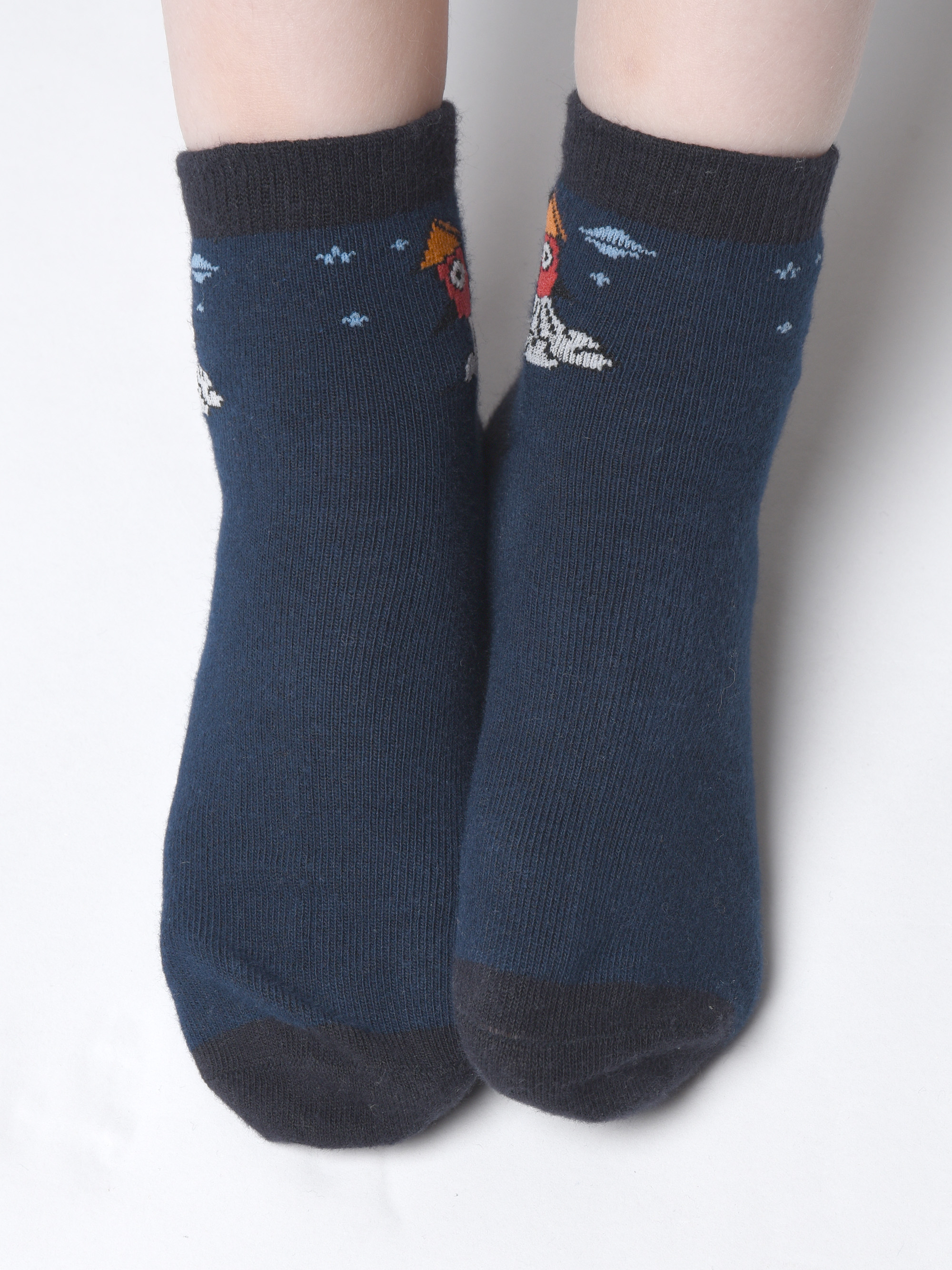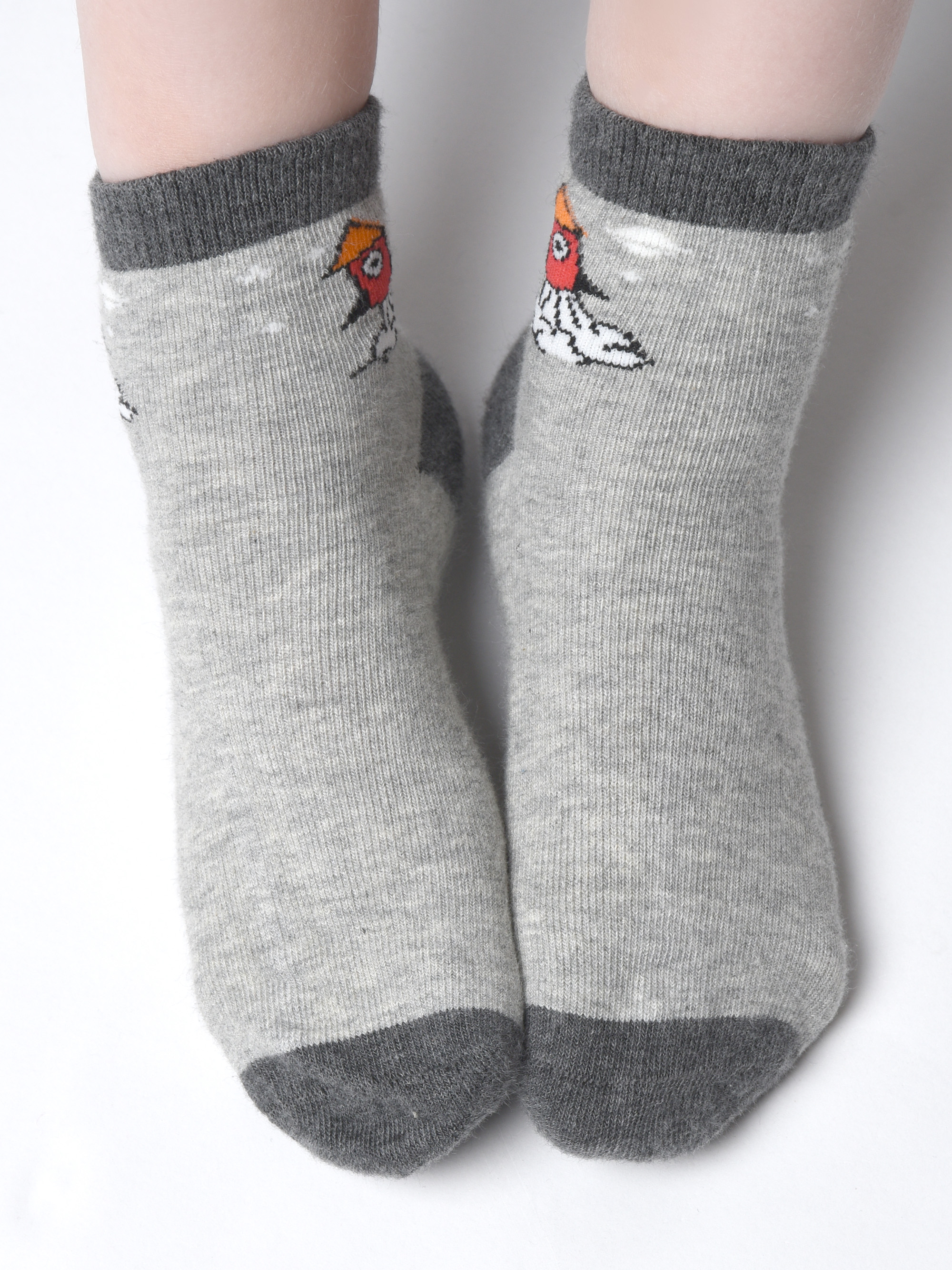 Детские носки с неординарным, веселым узором. Они сотканы из полотна на основе 82-х процентного хлопка, с остаточным добавлением синтетических волокон, которые неизбежны для износостойкости и яркости вещей. К такой расцветке легко подобрать верхнюю одежду. Мысок и пятка мягко повторяют анатомичную форму и не содержат лишних швов. Благодаря качественно подобранным волокнам, носочки быстро впитывают влагу, оставляя ножки сухими в течение дня. Резинка закрывает щиколотку, не передавливает. Спандекс образует растяжимость, а материя пропускает необходимый воздух и не колется.