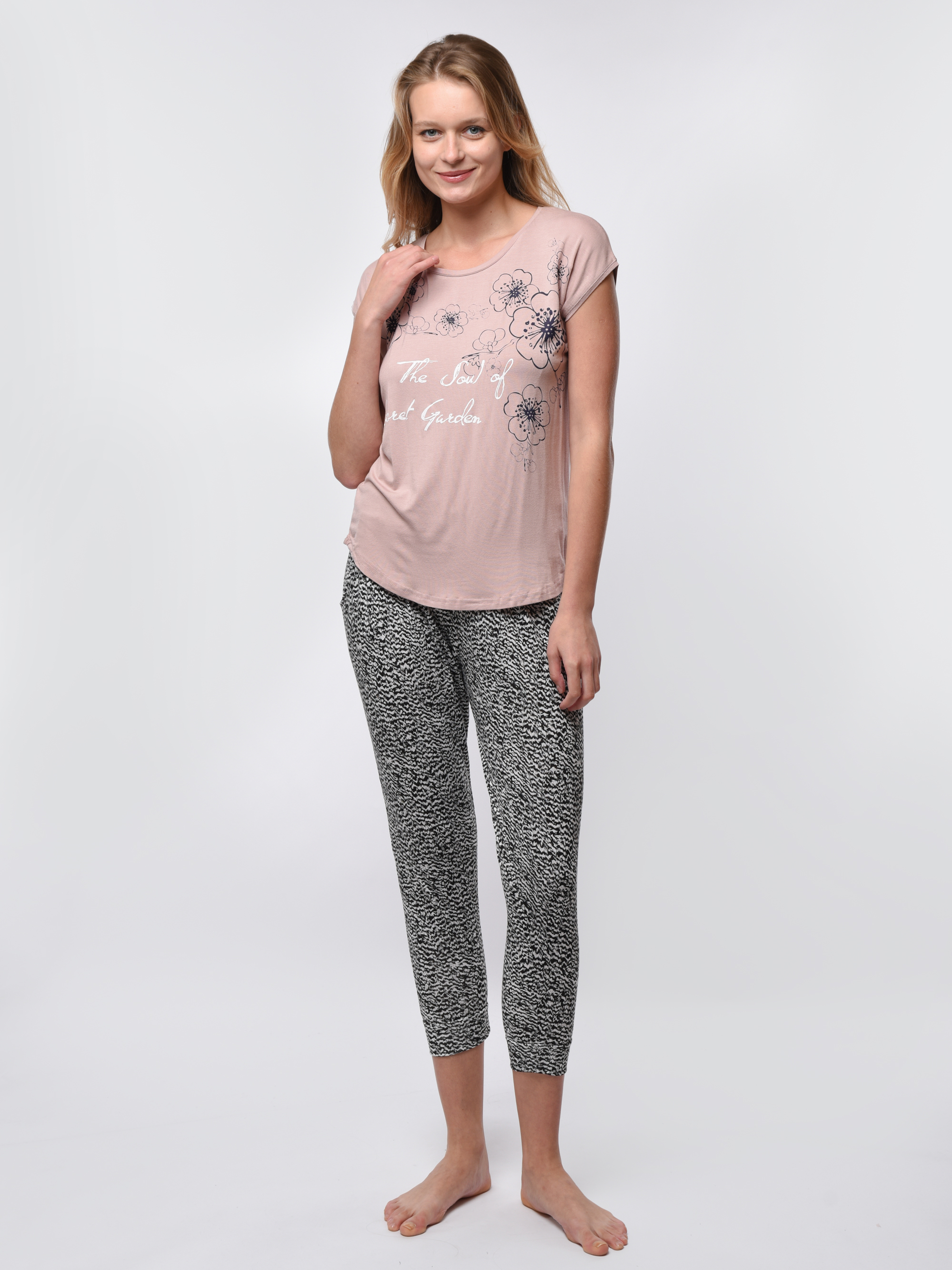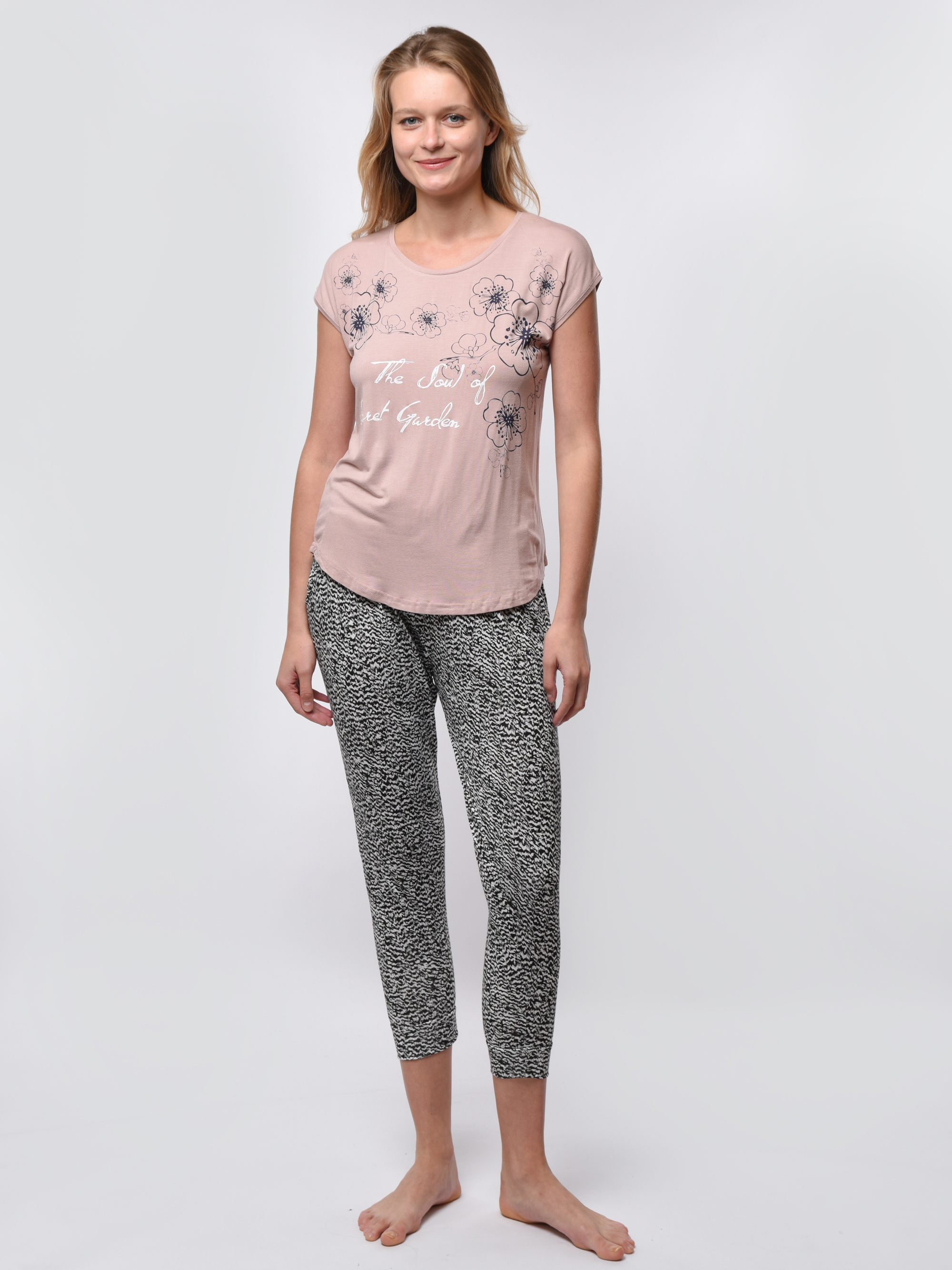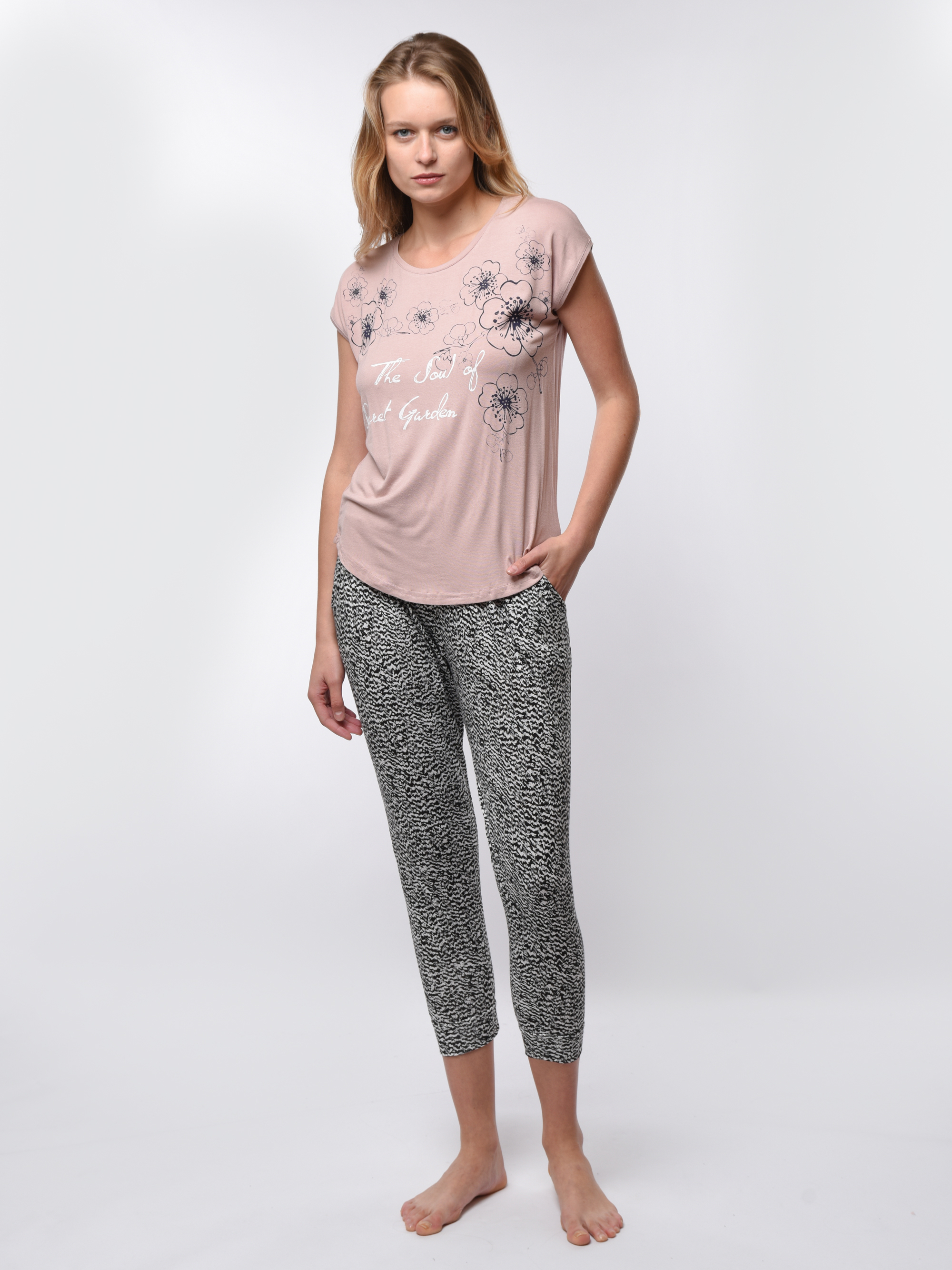 Женская пижама от бренда Nicoletta — это уют и комфорт в любое время года! Мягкая, свободная футболка с крупным принтом, и контрастные брючки свободного кроя, изготовлены из нежной вискозы, которая обеспечивает приятную текстуру к телу и свободу движений. Подарит ощущение нежности и тепла каждый день. Выбирайте стиль и удобство вместе с интернет-магазином Cascatto!