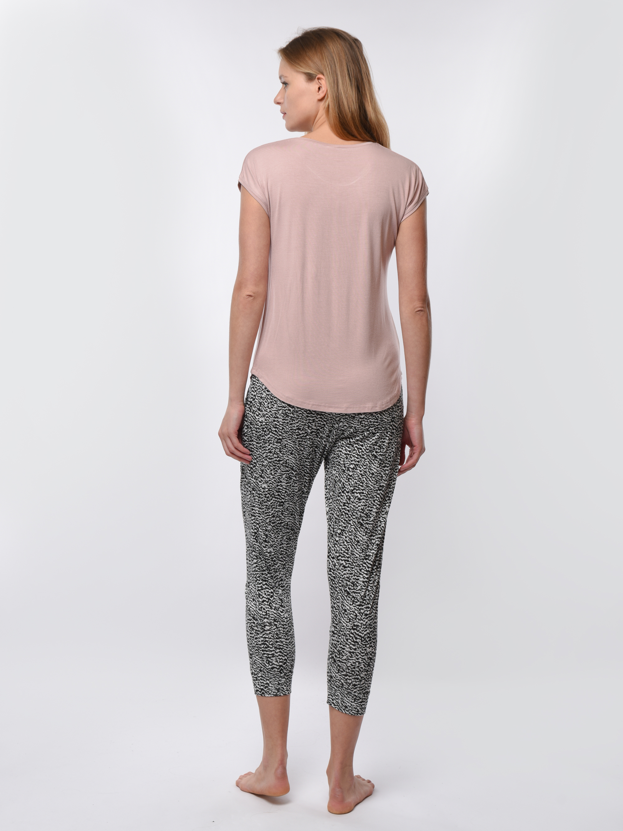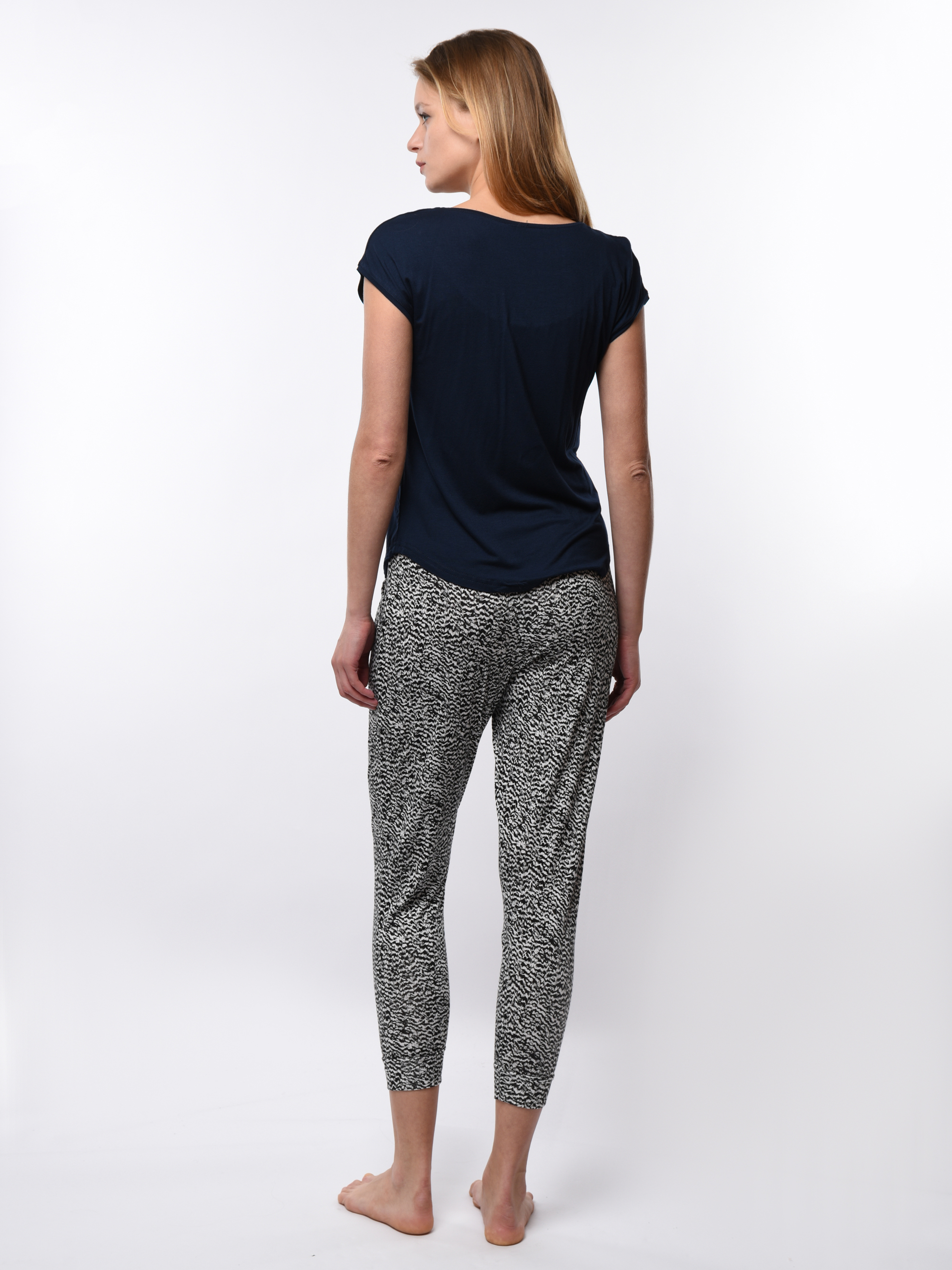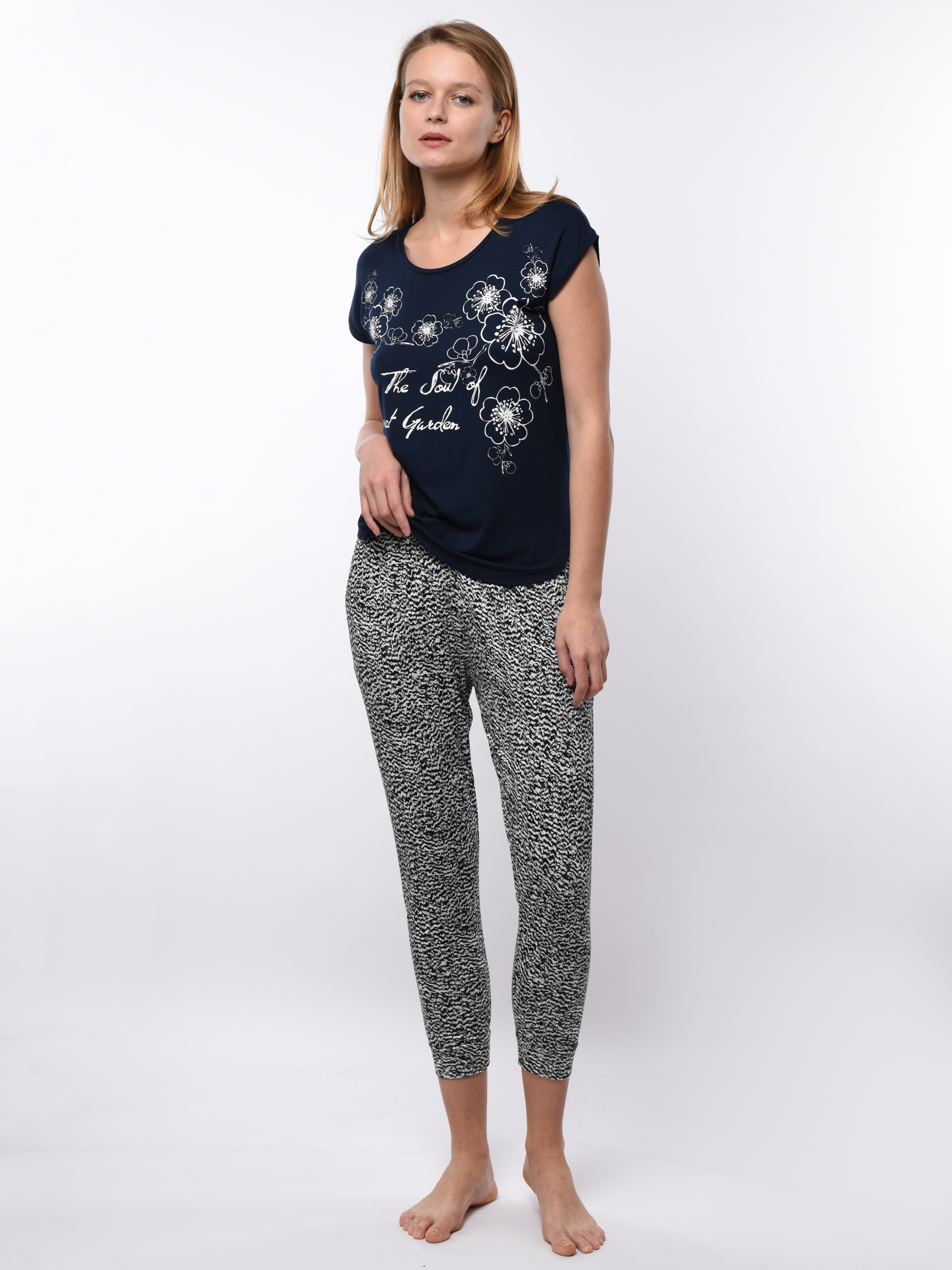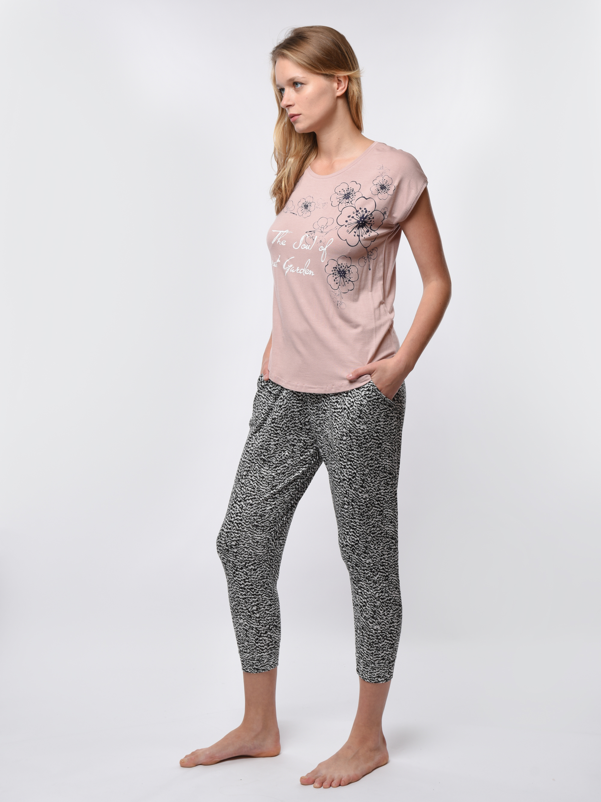 Женская пижама от бренда Nicoletta — это уют и комфорт в любое время года! Мягкая, свободная футболка с крупным принтом, и контрастные брючки свободного кроя, изготовлены из нежной вискозы, которая обеспечивает приятную текстуру к телу и свободу движений. Подарит ощущение нежности и тепла каждый день. Выбирайте стиль и удобство вместе с интернет-магазином Cascatto!