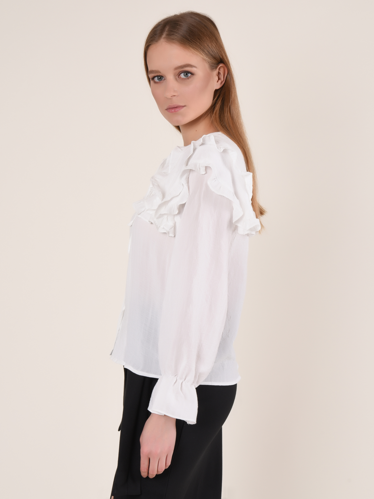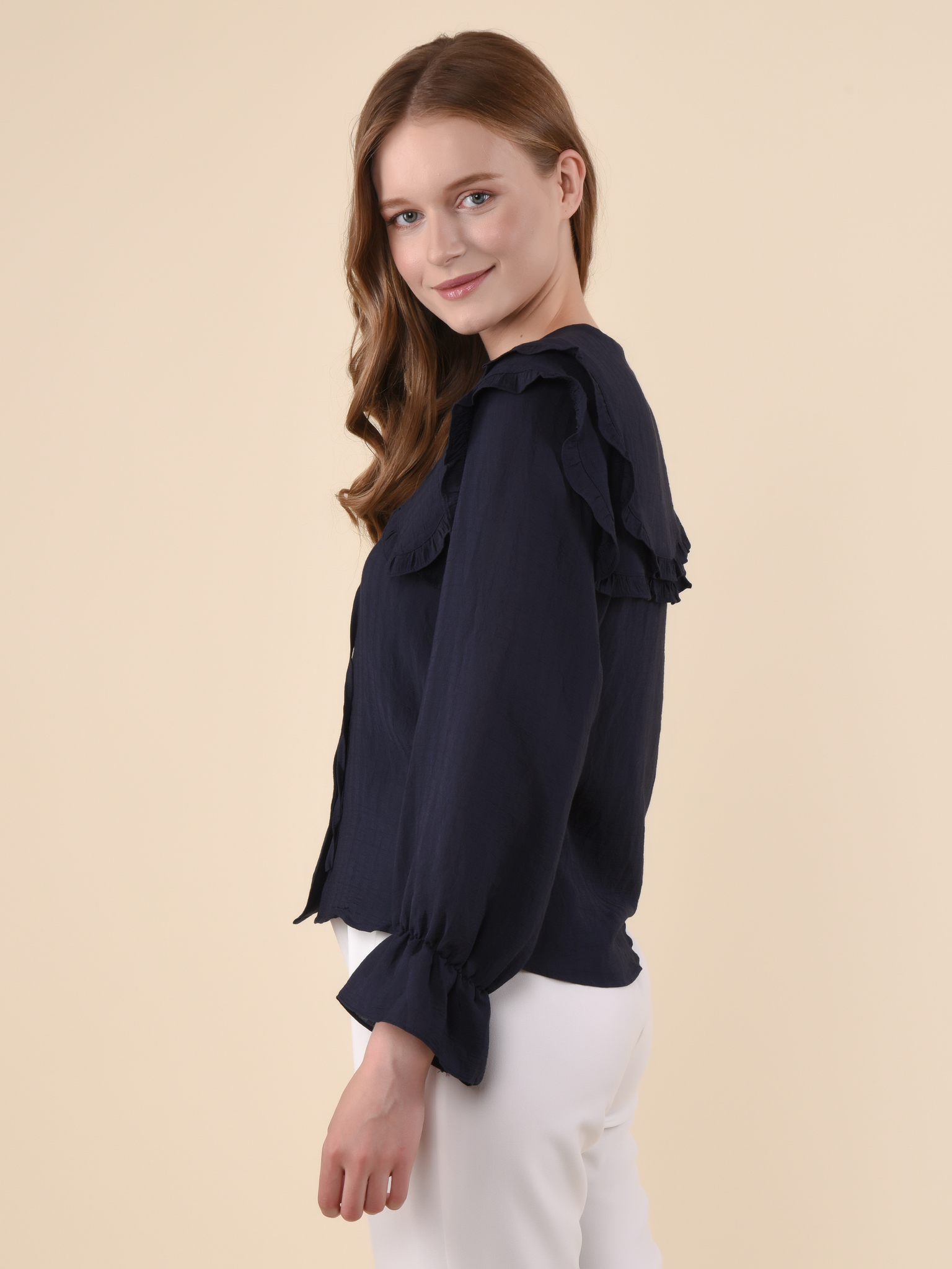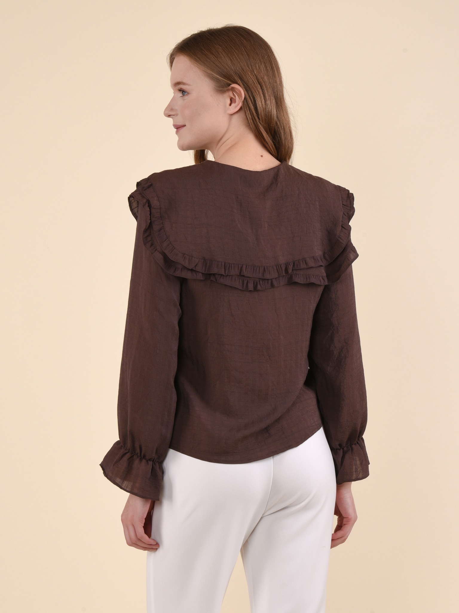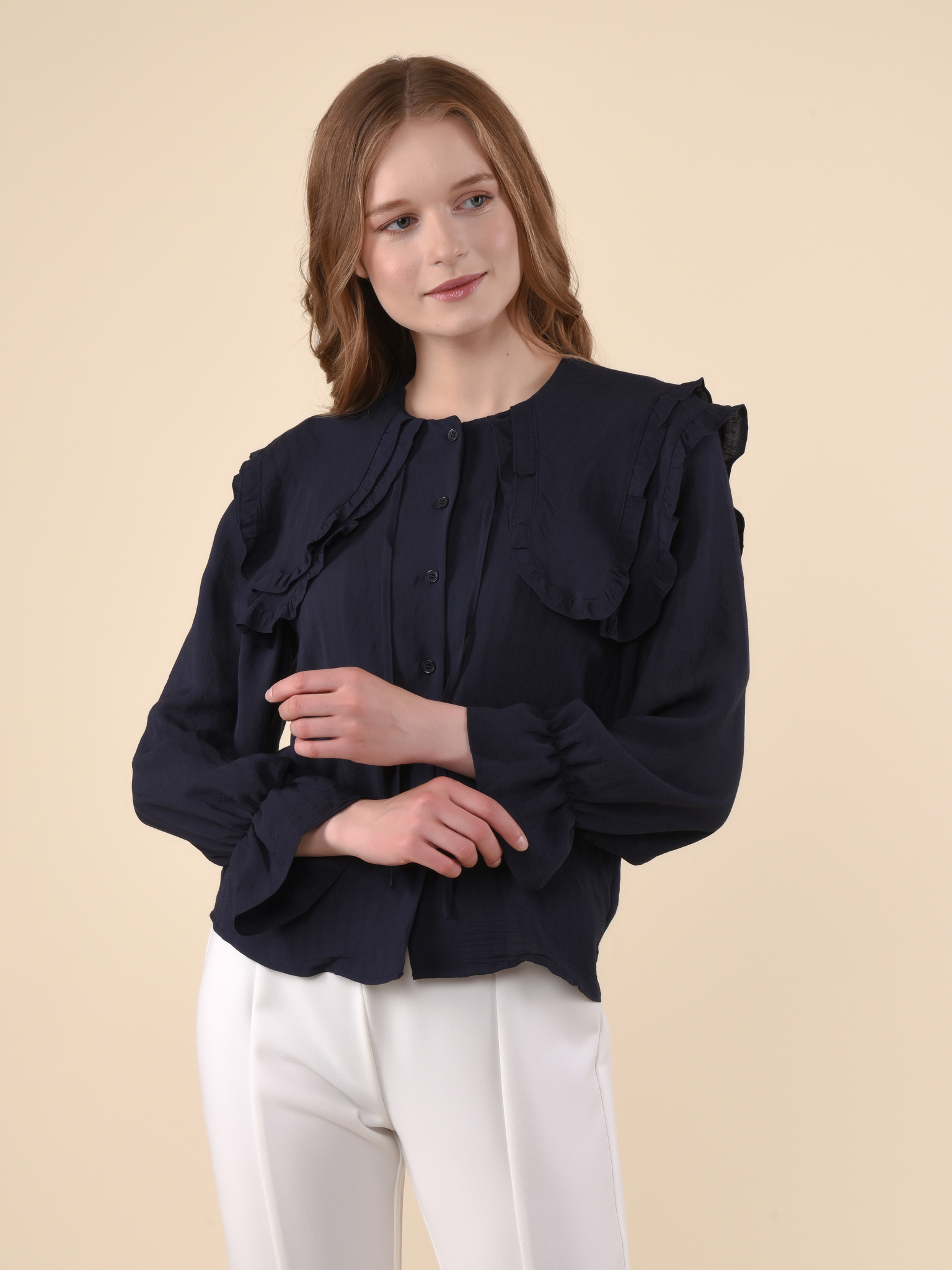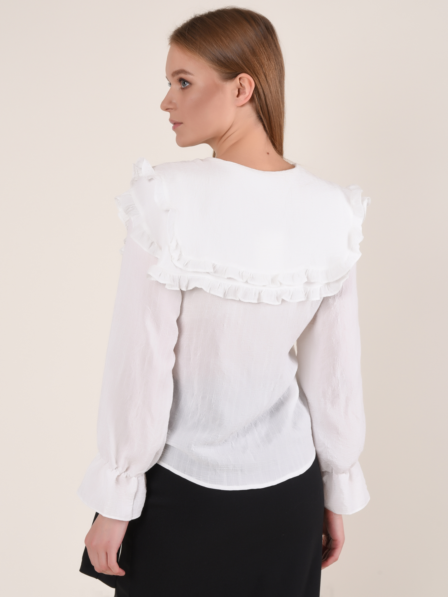 Женская блуза от Cascatto — элегантность и комфорт в каждой детали! Большой отложной воротник с нежными оборками придает образу утонченность и шарм. Идеальный выбор для любого мероприятия, подойдет под любые брюки и юбки. Создайте свой неповторимый образ вместе с Cascatto!