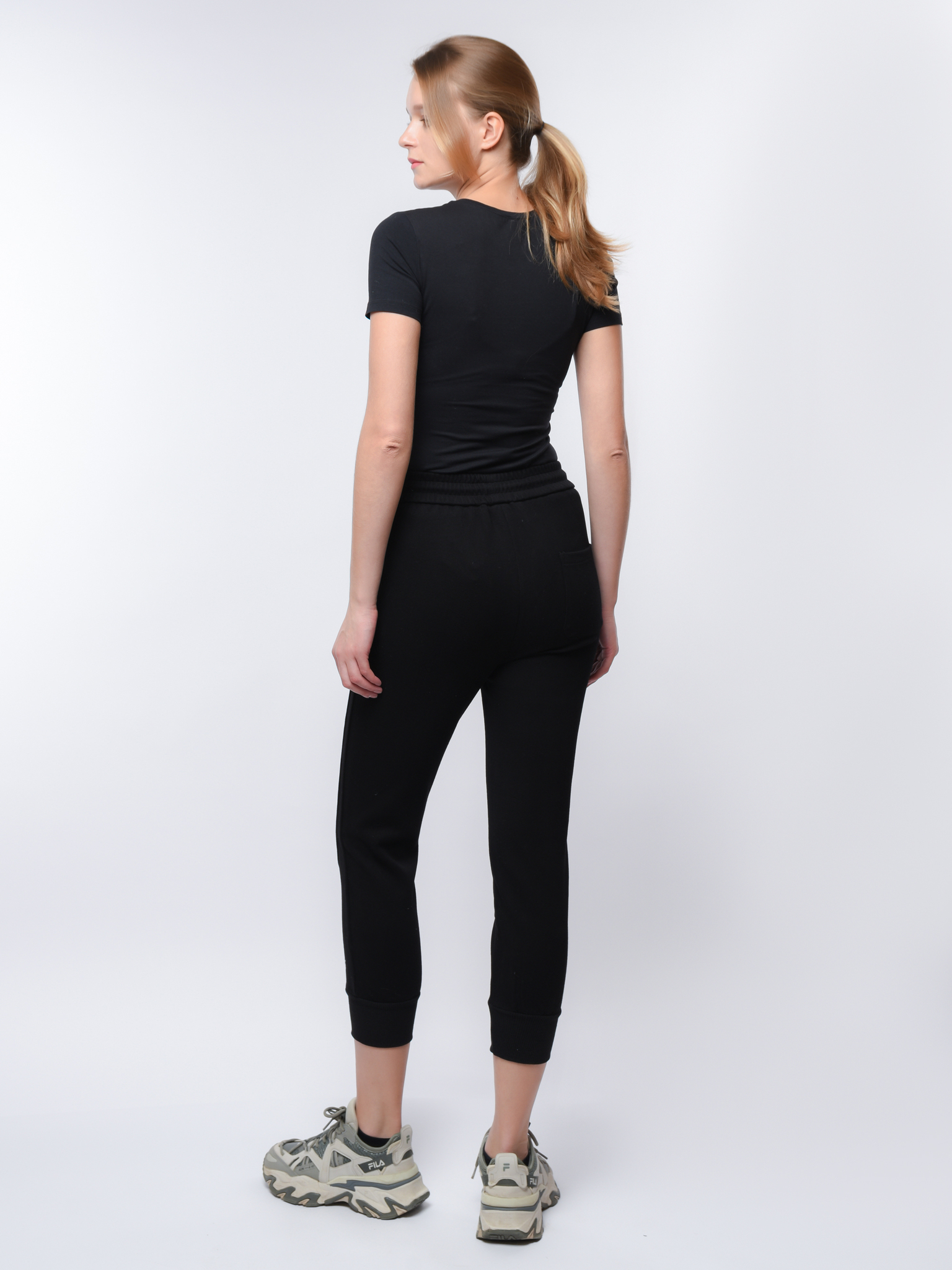Брюки женские спортивные. Модель укороченная с двумя боковыми карманами и одним накладным сзади. Изящные брюки от бренда Cascatto – идеальный выбор для комфортного отдыха и активных будней! Изготовлены из высококачественных материалов. Обеспечьте любимой вещи бережную стирку при 30 градусах.