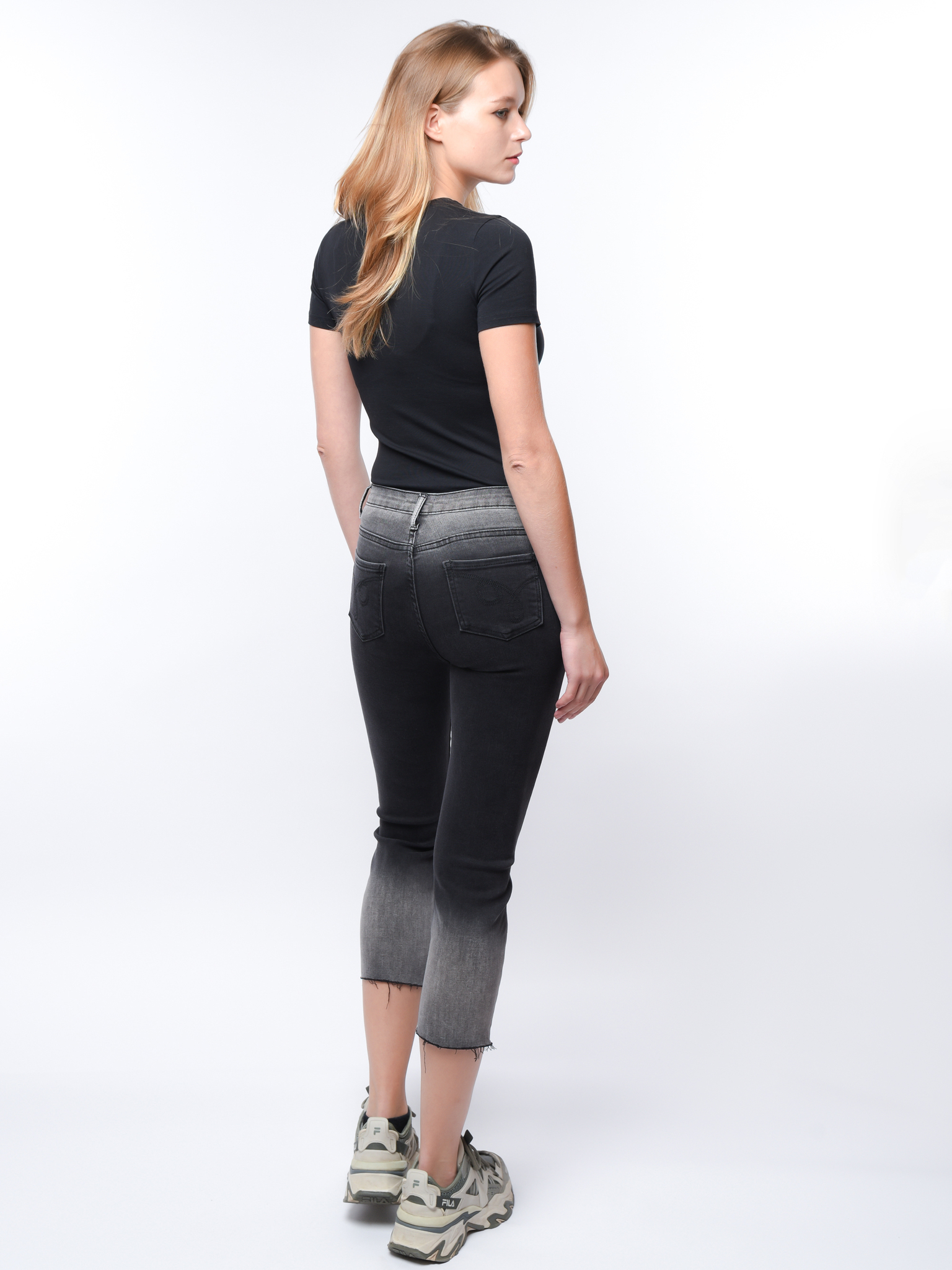 Короткие джинсовые брюки обтягивающего силуэта – стильный выбор для ваших образов! Оригинальная расцветка - градиент от черного к серому придаст вашему образу индивидуальность и неповторимость. Элегантные швы, аккуратные карманы и удобные шлевки для ремня подчеркнут качество модели. Эти джинсы станут незаменимым элементом вашего гардероба, идеально подойдут как для повседневных прогулок, так и для яркого вечернего выхода. Стильный тренд сезона по достойной цене!