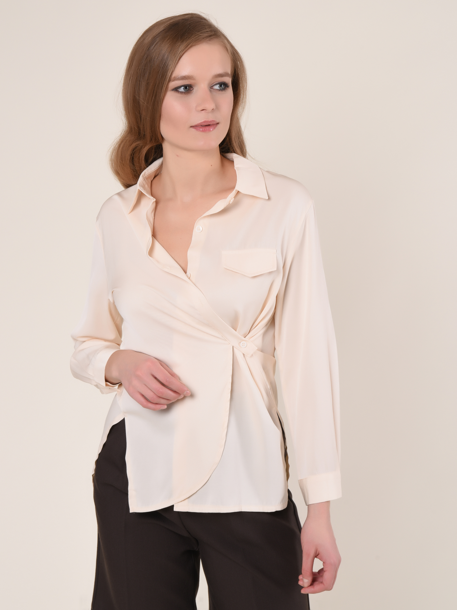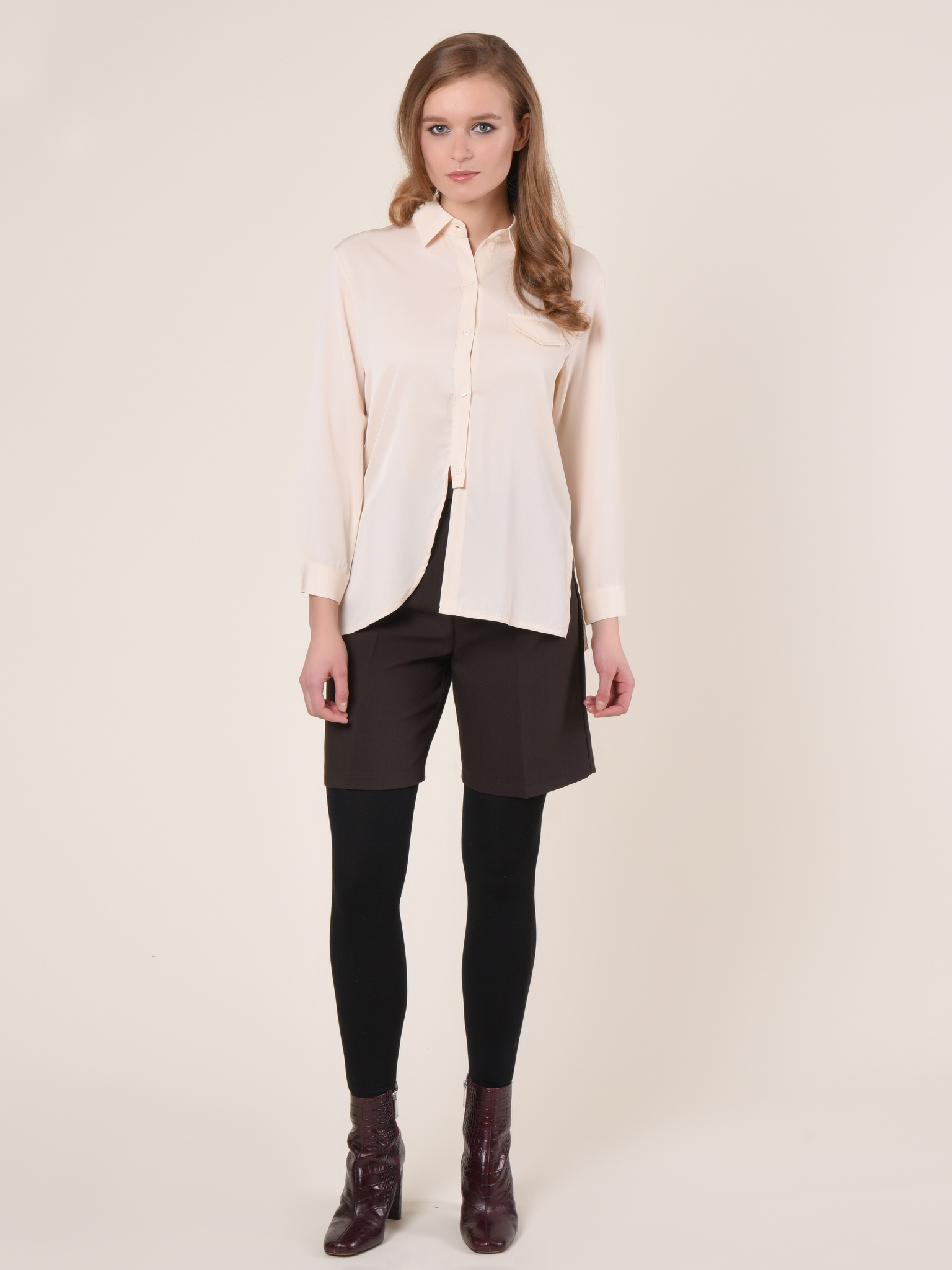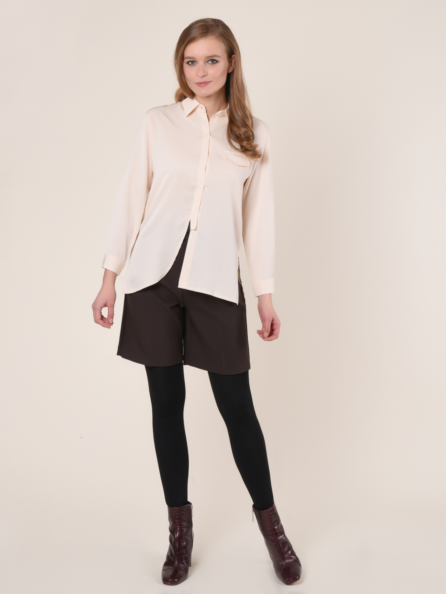 Рубашка свободного кроя с оригинальной асимметричной застёжкой – это универсальная вещь гардероба, которая гармонично впишется как в повседневные образы, так и в деловые ансамбли. Несимметричный дизайн пуговиц привносит элемент оригинальности и подчёркивает индивидуальность владельца. Свободный крой обеспечивает комфорт при носке, а также позволяет сочетать рубашку с различными типами одежды благодаря своей универсальности.