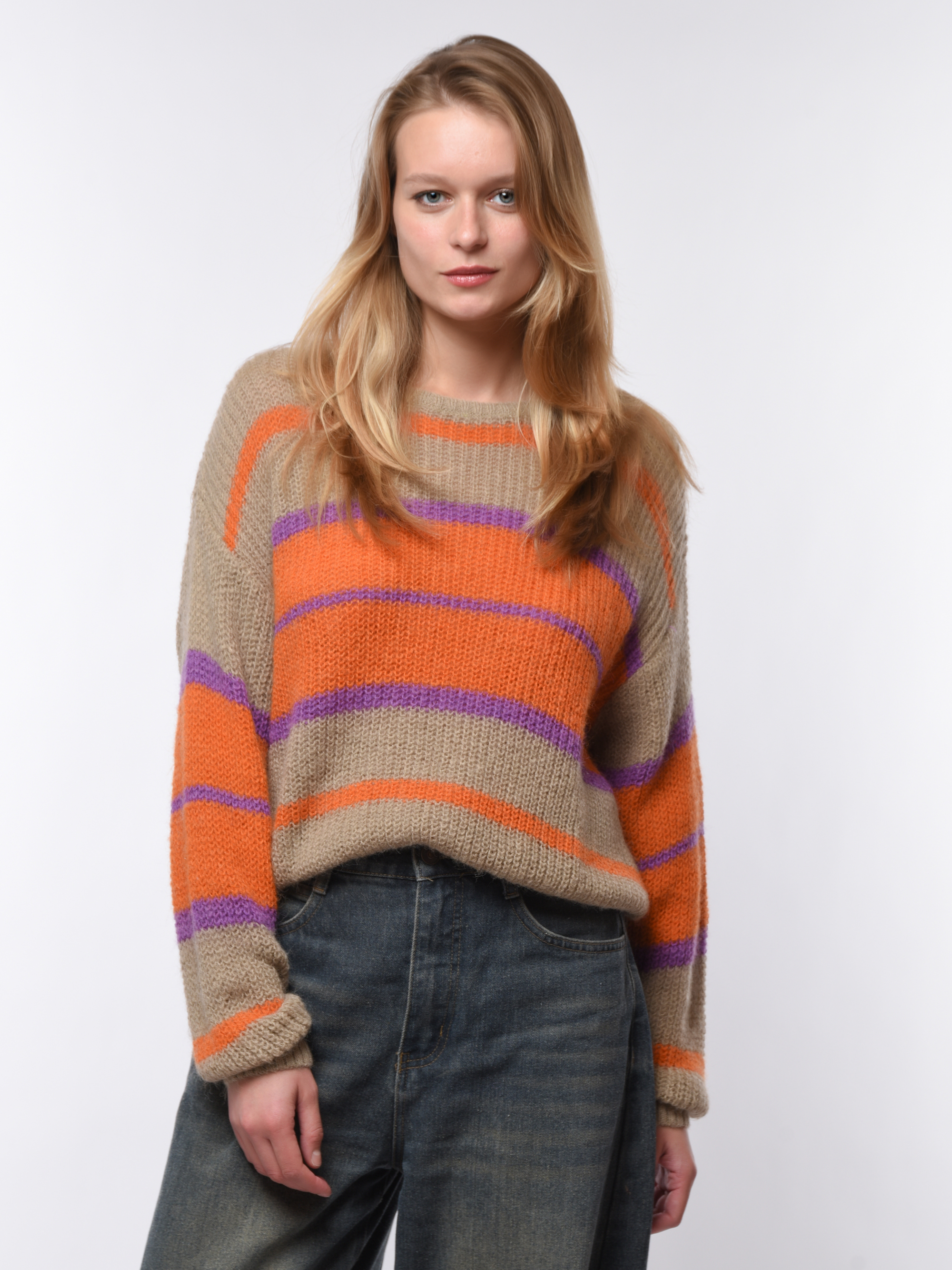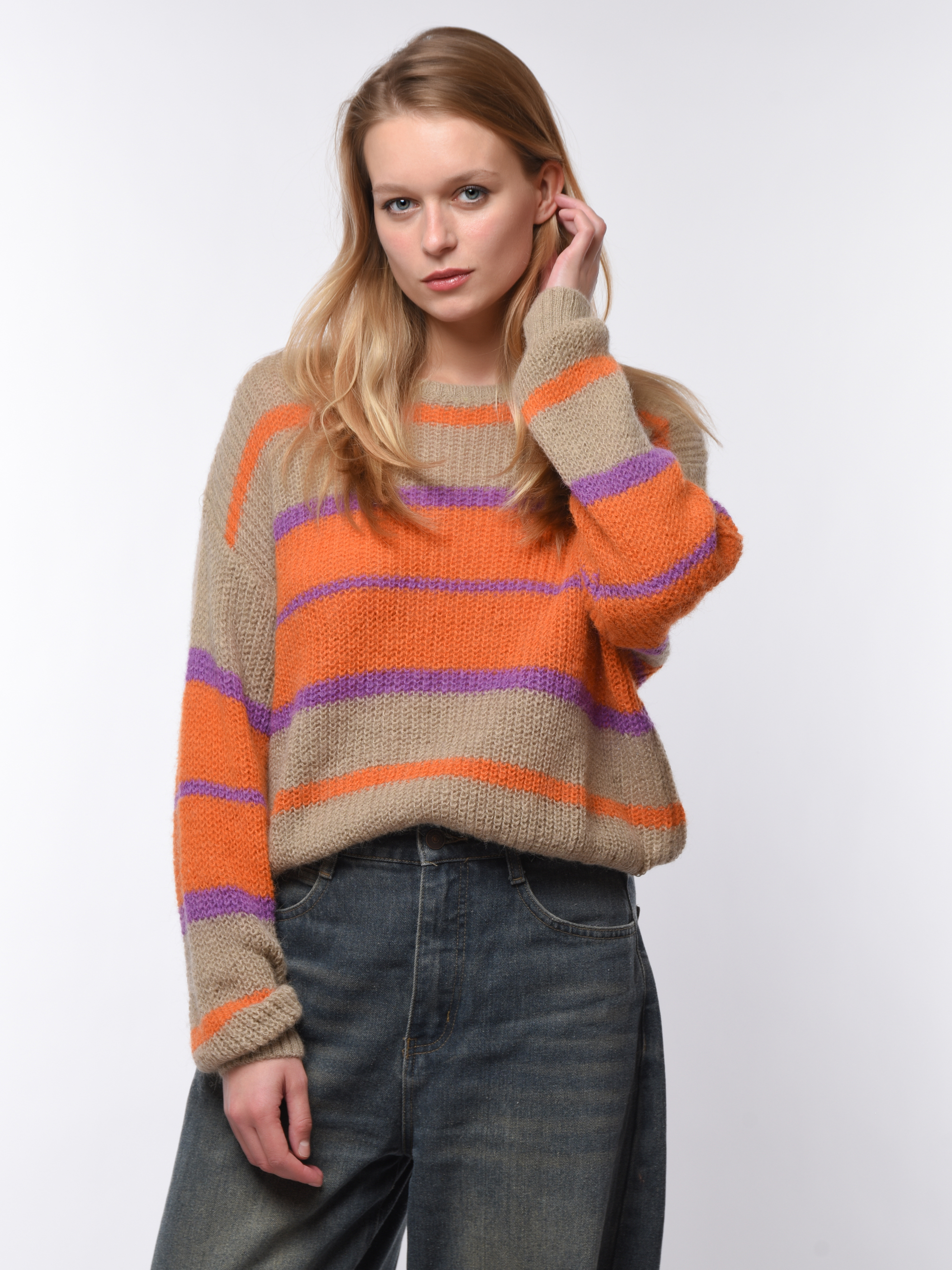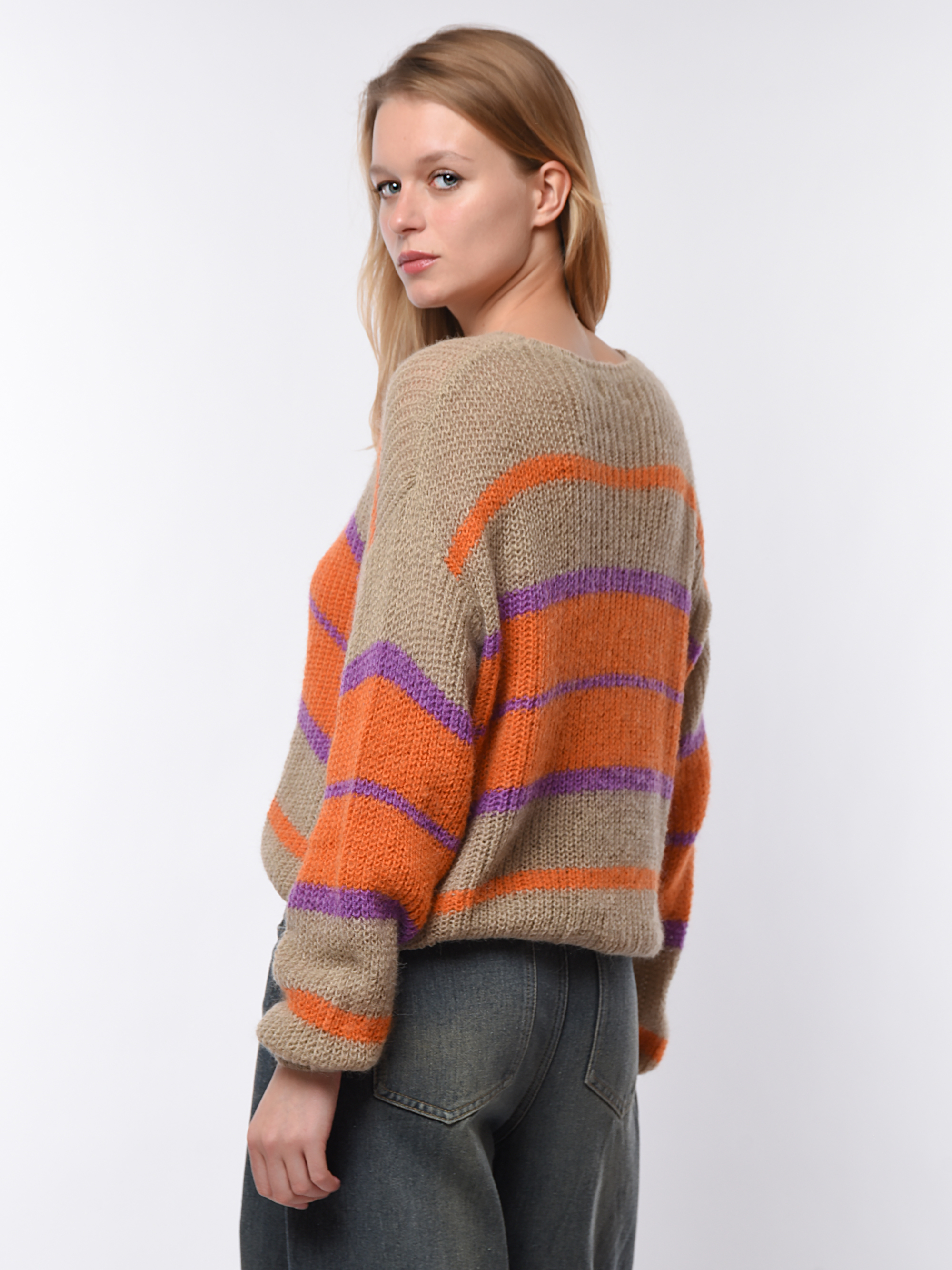 Женский свитер от Cascatto – это стиль и комфорт в одном изделии! Модель свободного кроя, со спущенными рукавами, по всей поверхности украшен яркими полосами разной ширины. Идеальный выбор для холодного времени года благодаря универсальному дизайну и качественному материалу. Легкий уход: просто постирайте при 30 градусах бережно – и ваш свитер всегда будет выглядеть как новый. Создайте свой уникальный образ вместе с Cascatto уже сегодня!