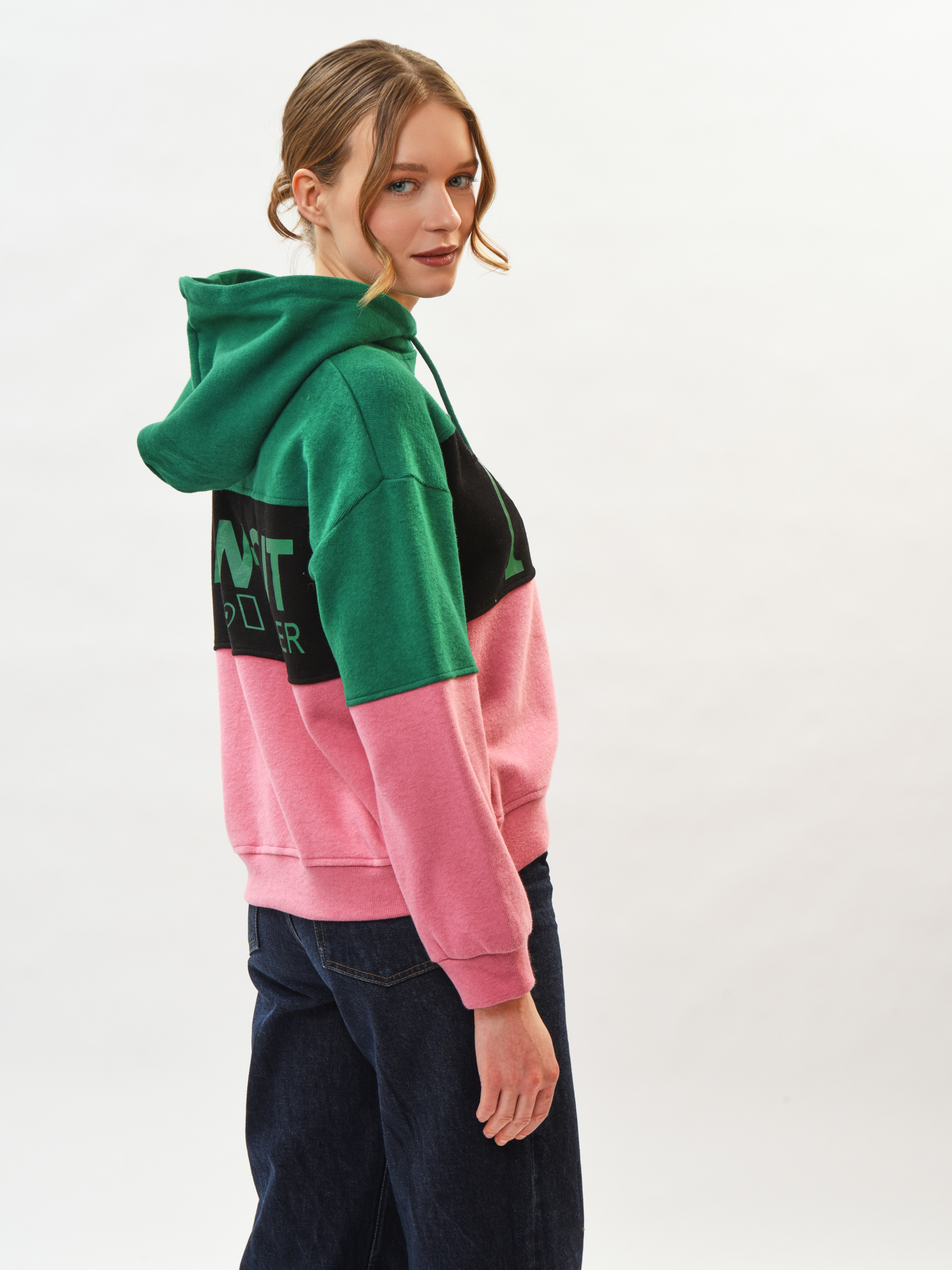 Толстовка женская из высококачественного хлопкового трикотажа с добавлением эластана. В конструкции модели предусмотрены широкие яркие полосы различного цвета, придающие изделию особый шарм и актуальность. Капюшон обеспечивает дополнительную защиту от непогоды. Идеально подходит как для повседневной носки, так и активного отдыха.