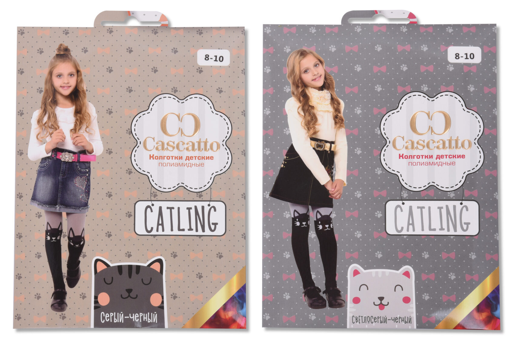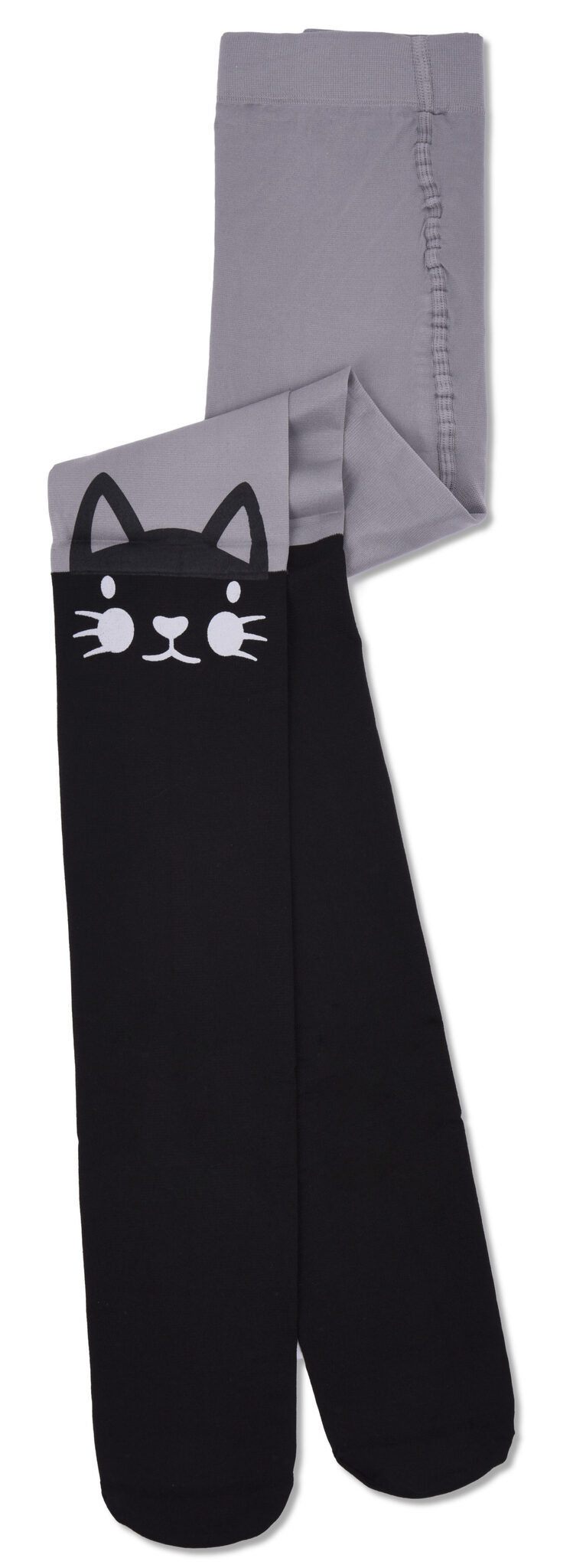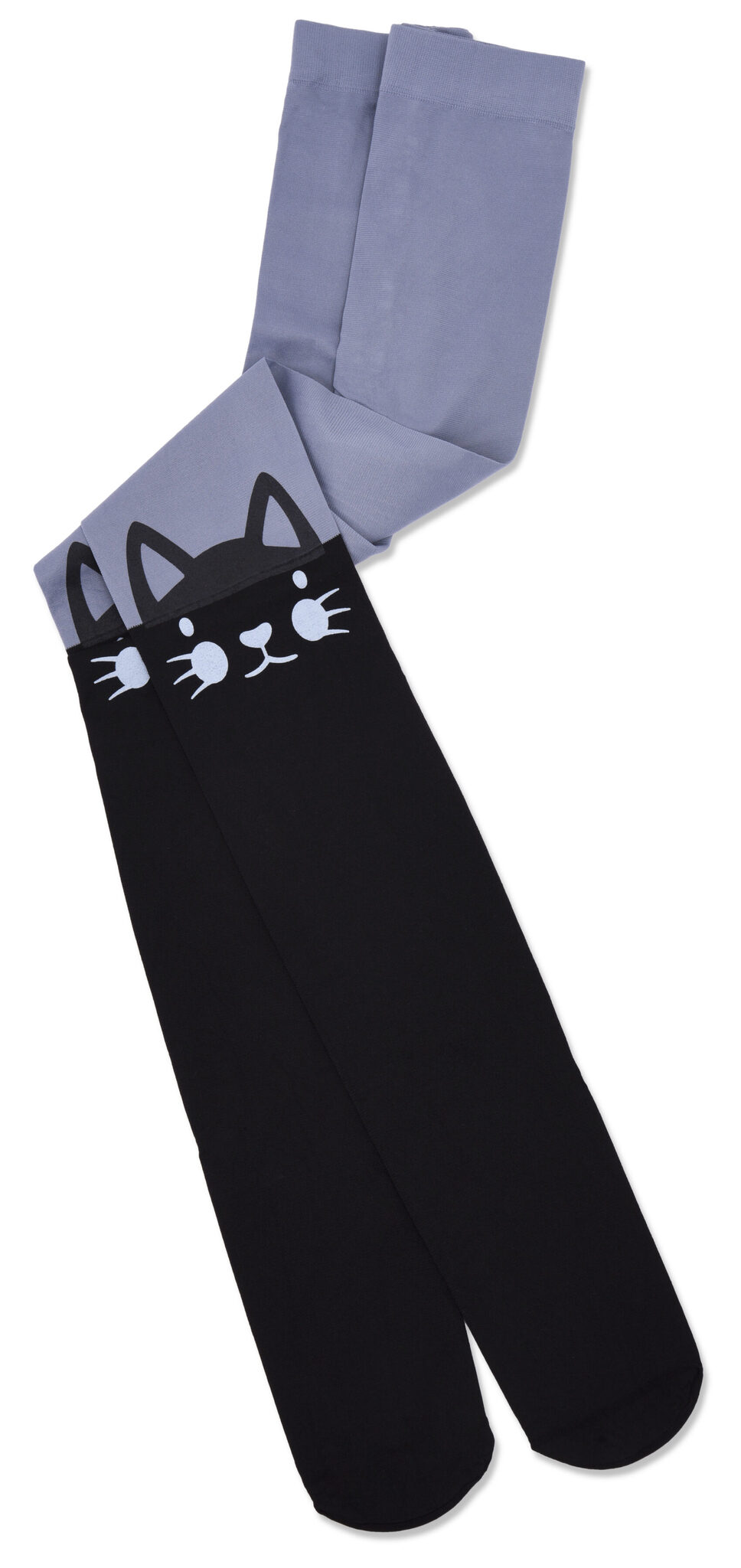Колготки для девочек "Кошки" полиамидные Cascatto , цвет: нет детального цвета, светло-серый/черный, серый/черный