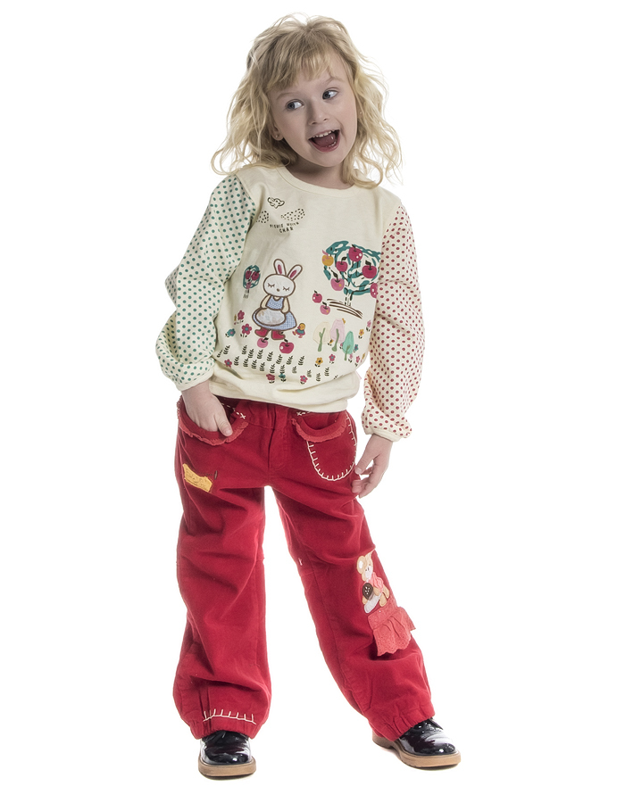 Брюки для девочки E-Cascatto , цвет: серый, красный