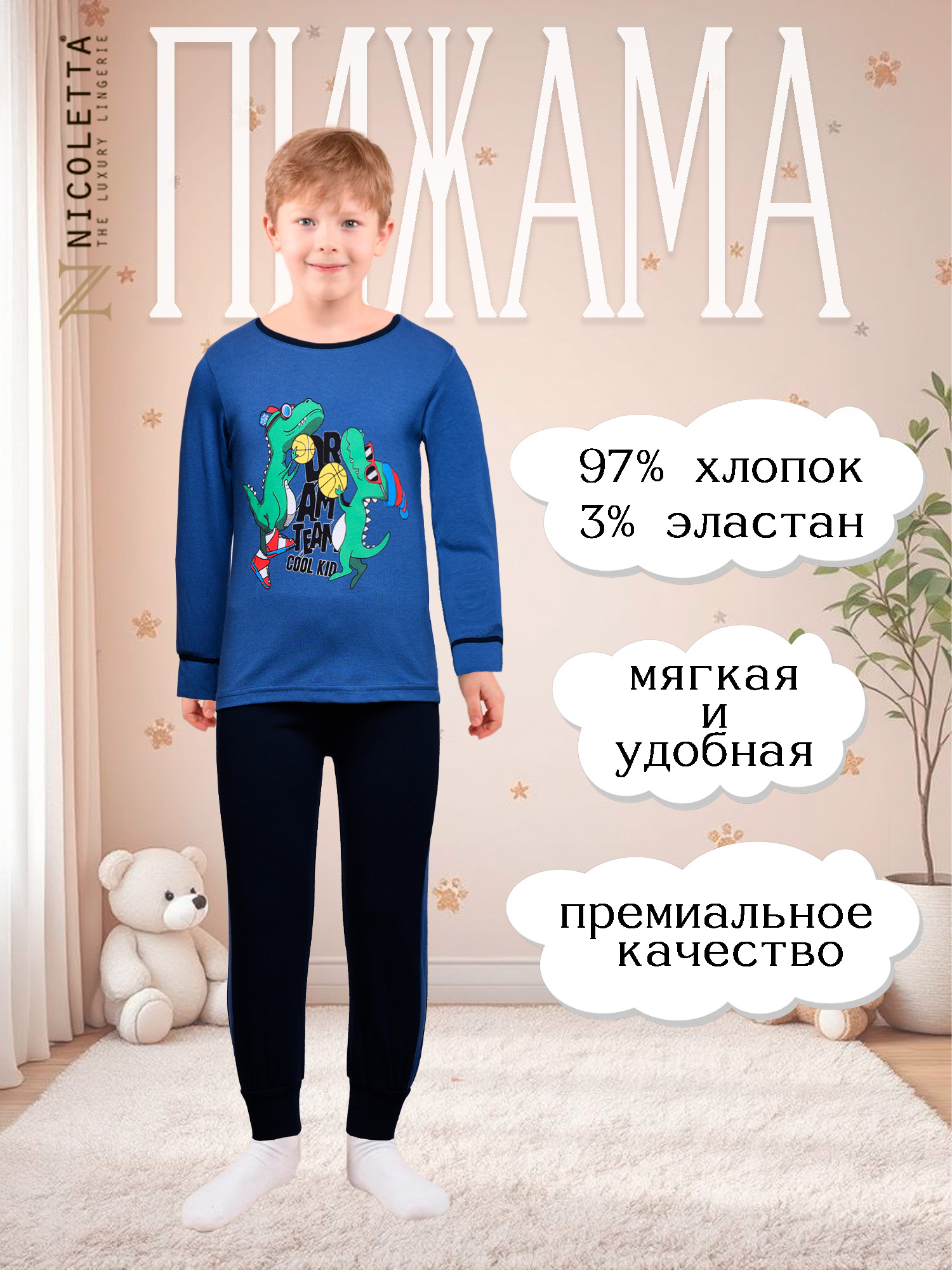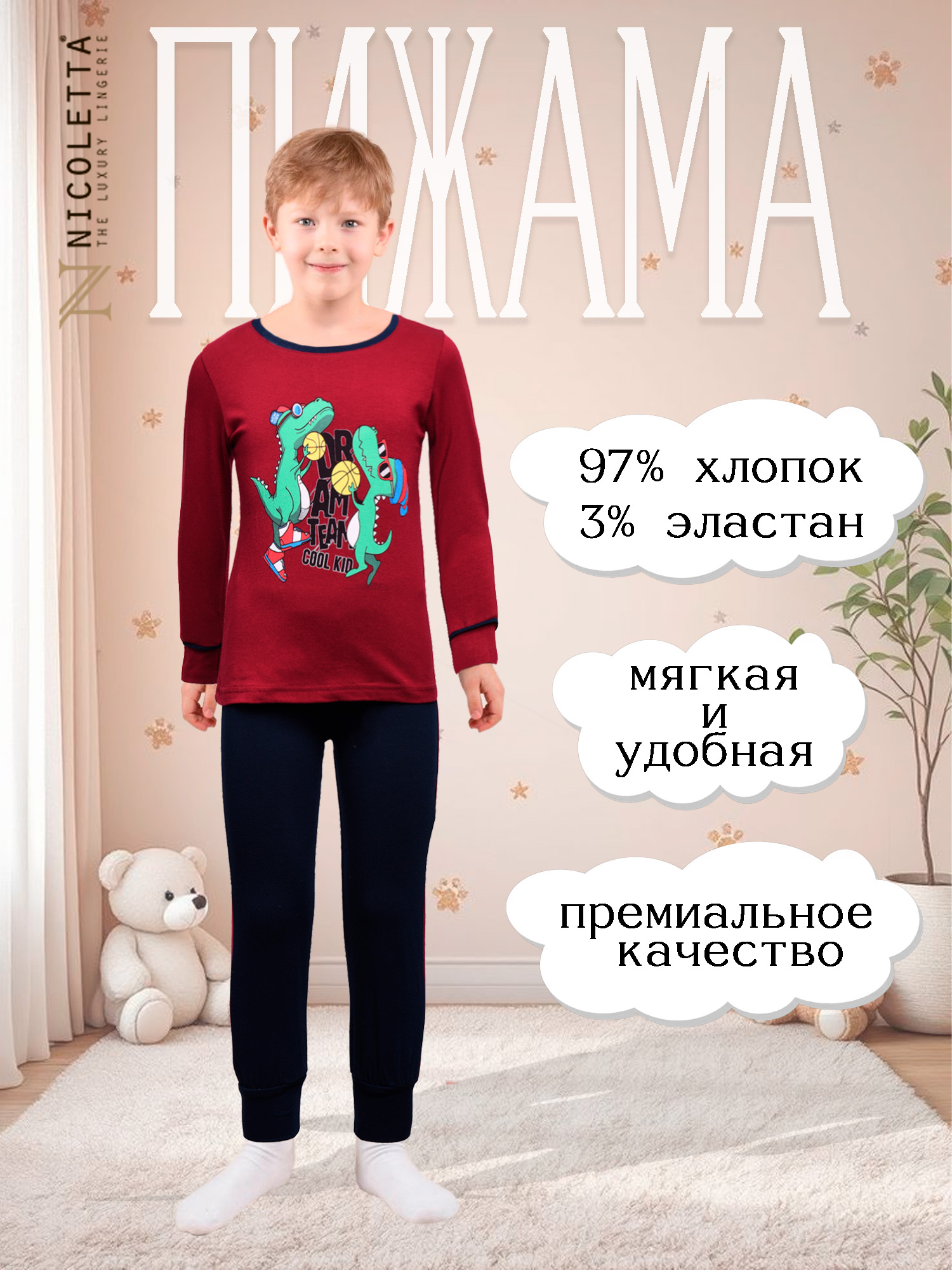 Погрузите малыша в атмосферу комфорта и уюта вместе с пижамой от бренда "Nicoletta"! Идеальный комплект изготовлен из тонкого и мягкого хлопкового трикотажа, который обеспечивает свободу движений.