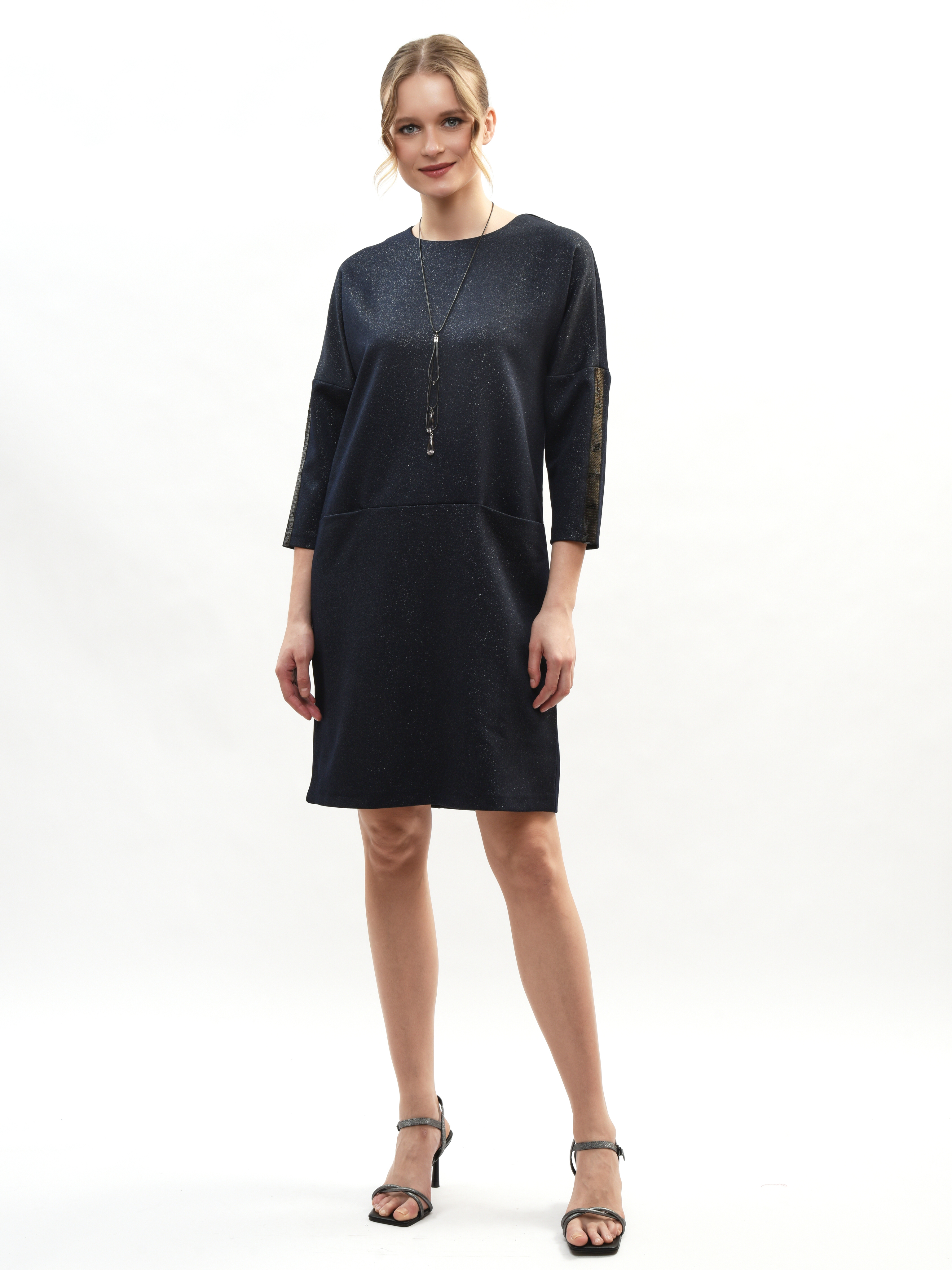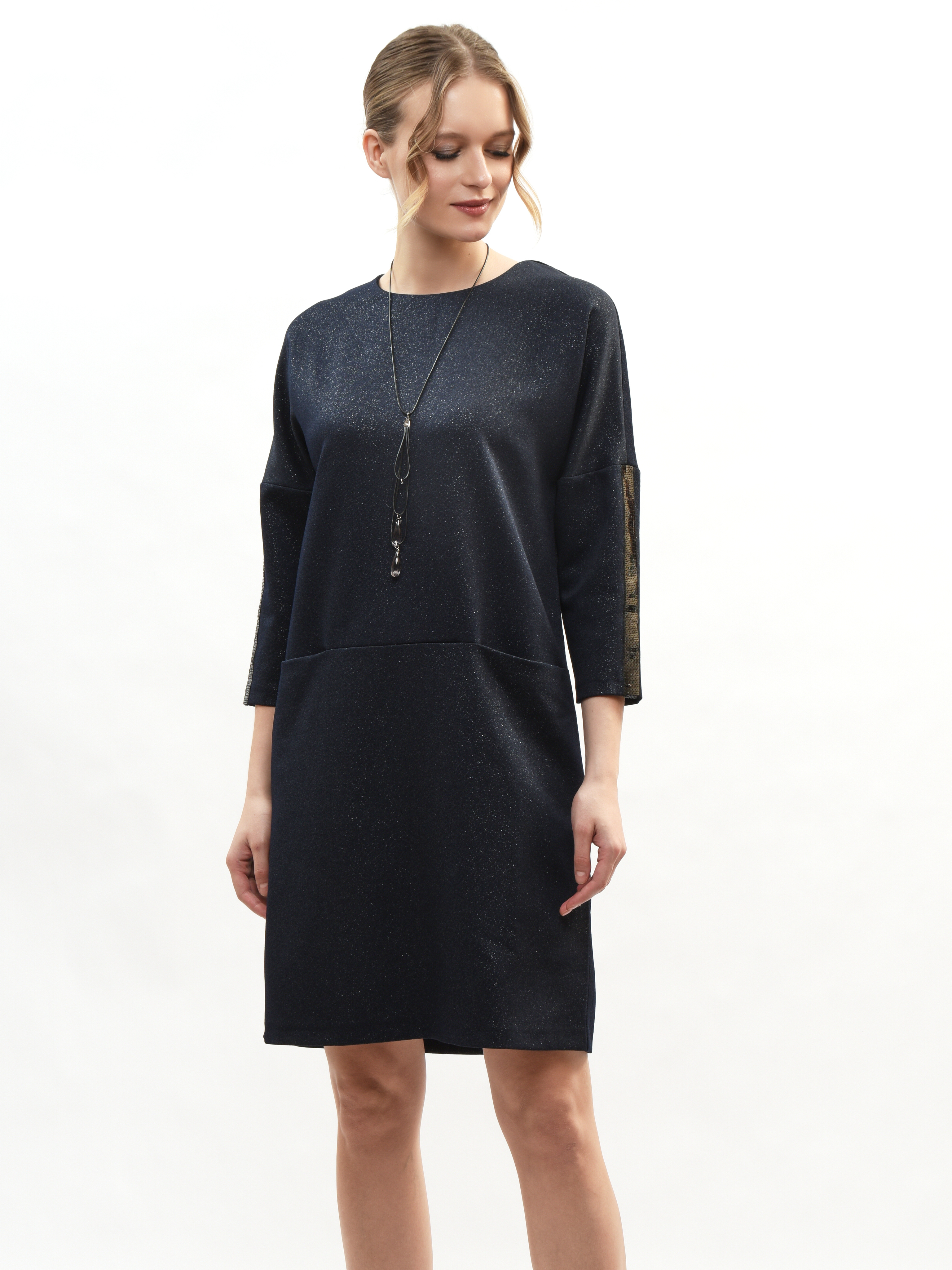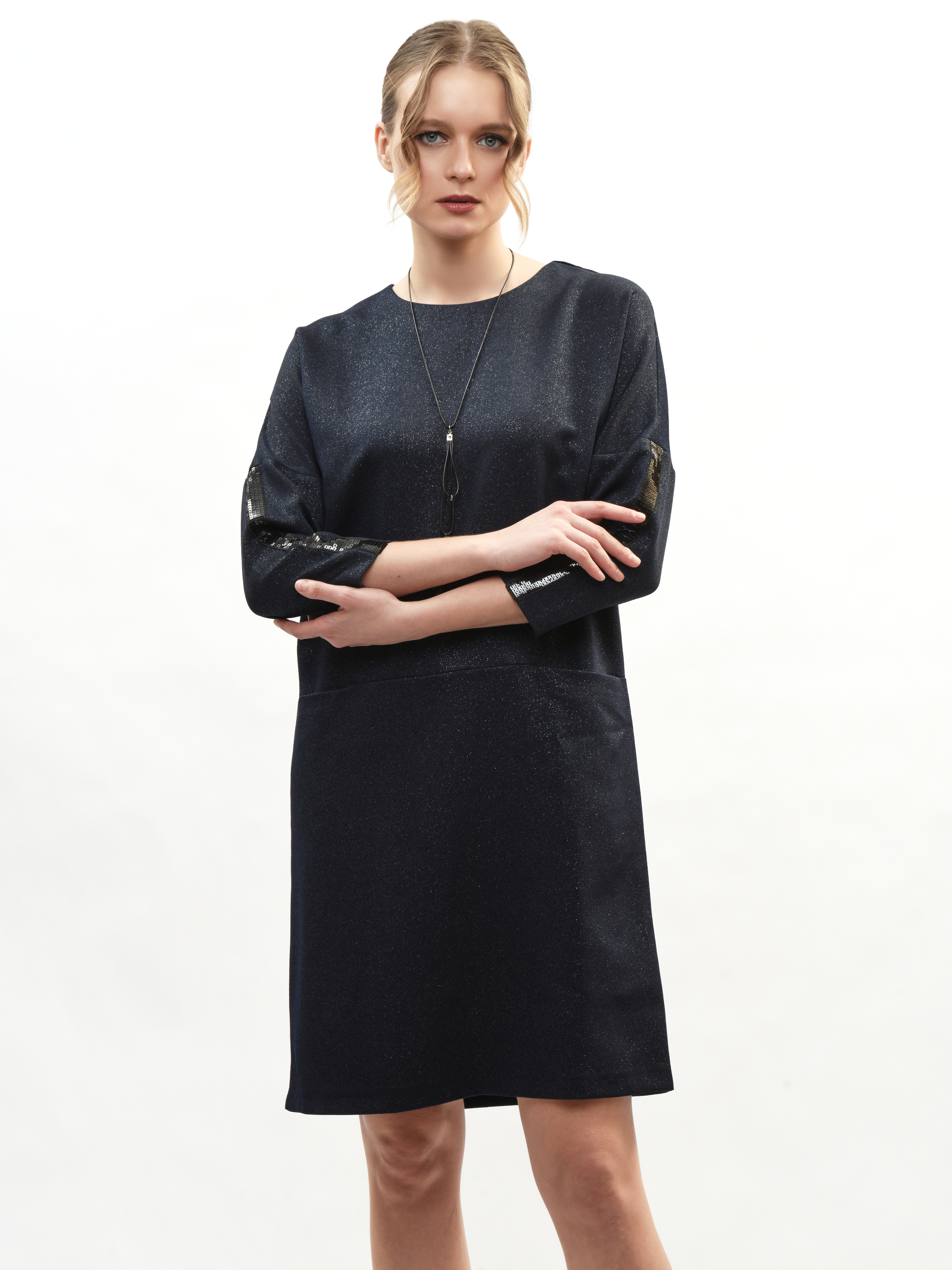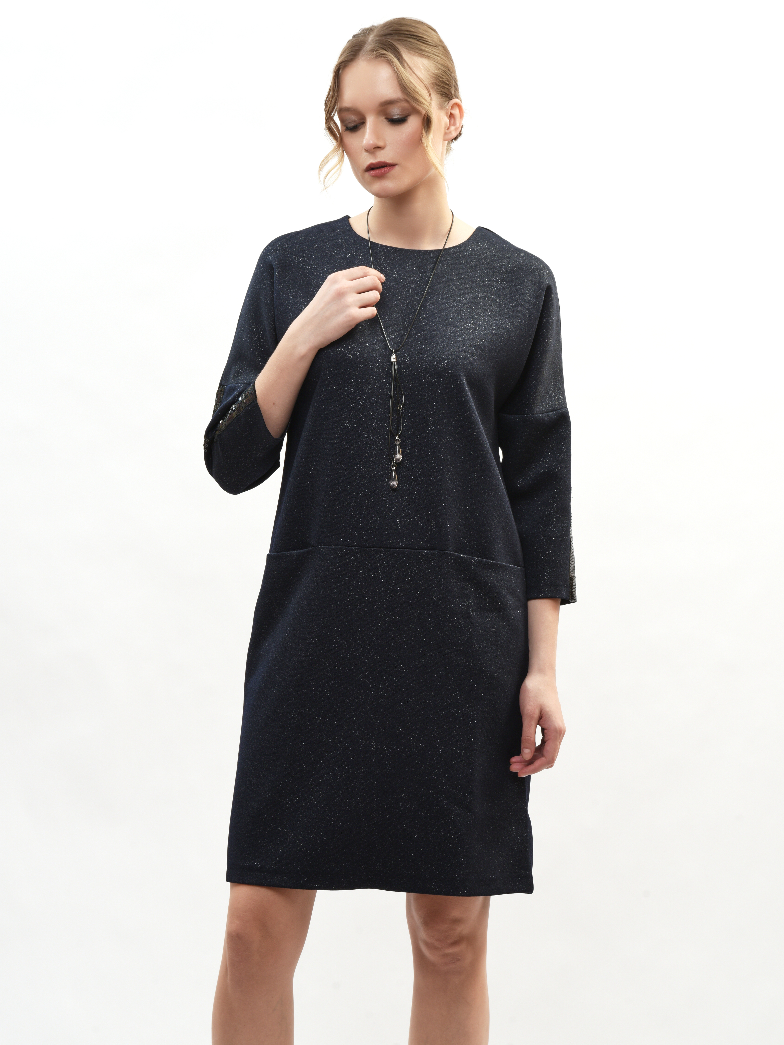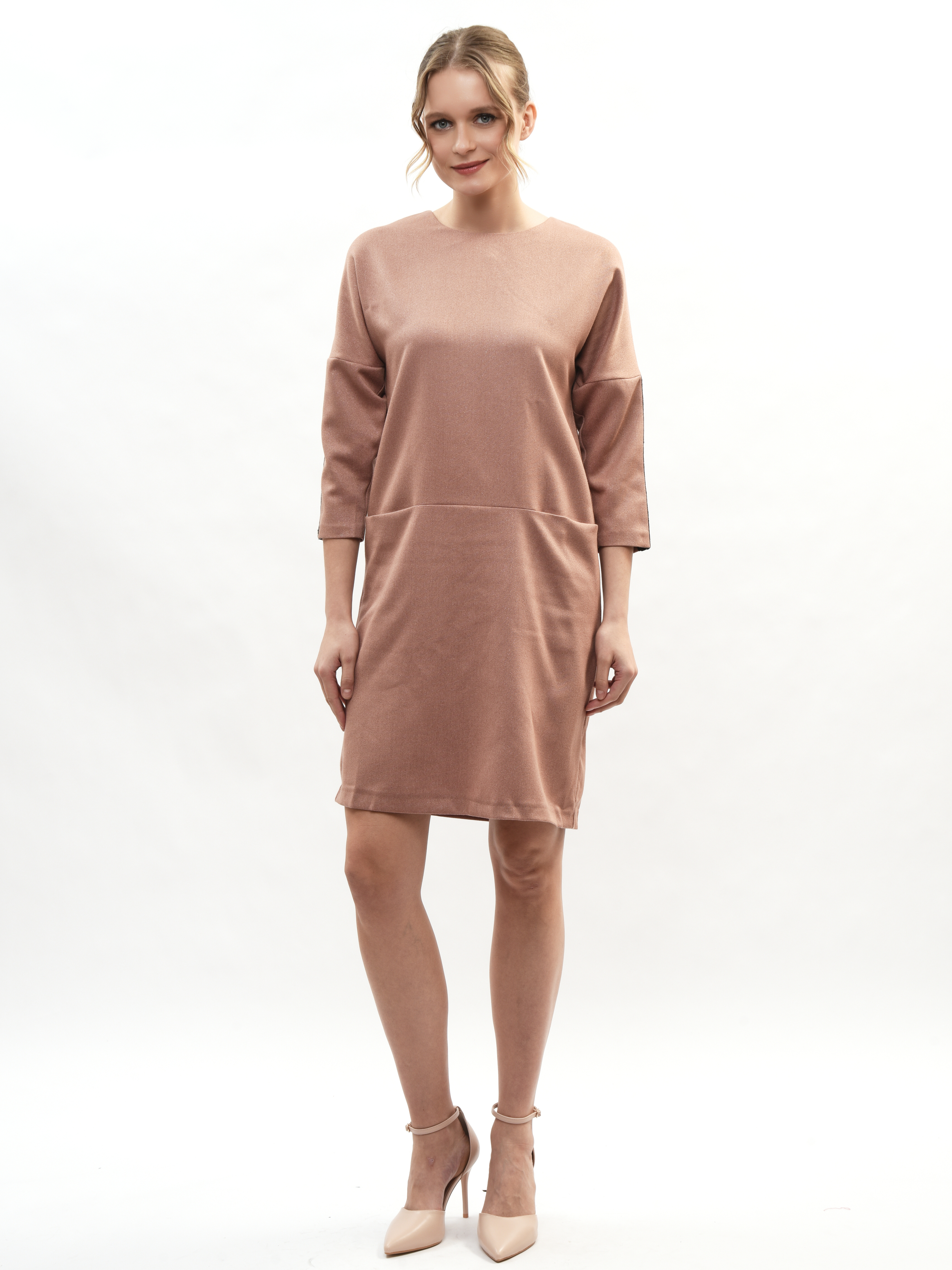 Платье прямого кроя – ваш идеальный спутник в создании элегантного образа! Круглая горловина подчеркивает красоту шеи, а рукава три четверти придают нотку романтики. Глубокие карманы удобны и практичны. Это платье станет вашим любимым выбором для повседневных прогулок и вечерних встреч. Элегантность, комфорт и стиль в каждой детали!