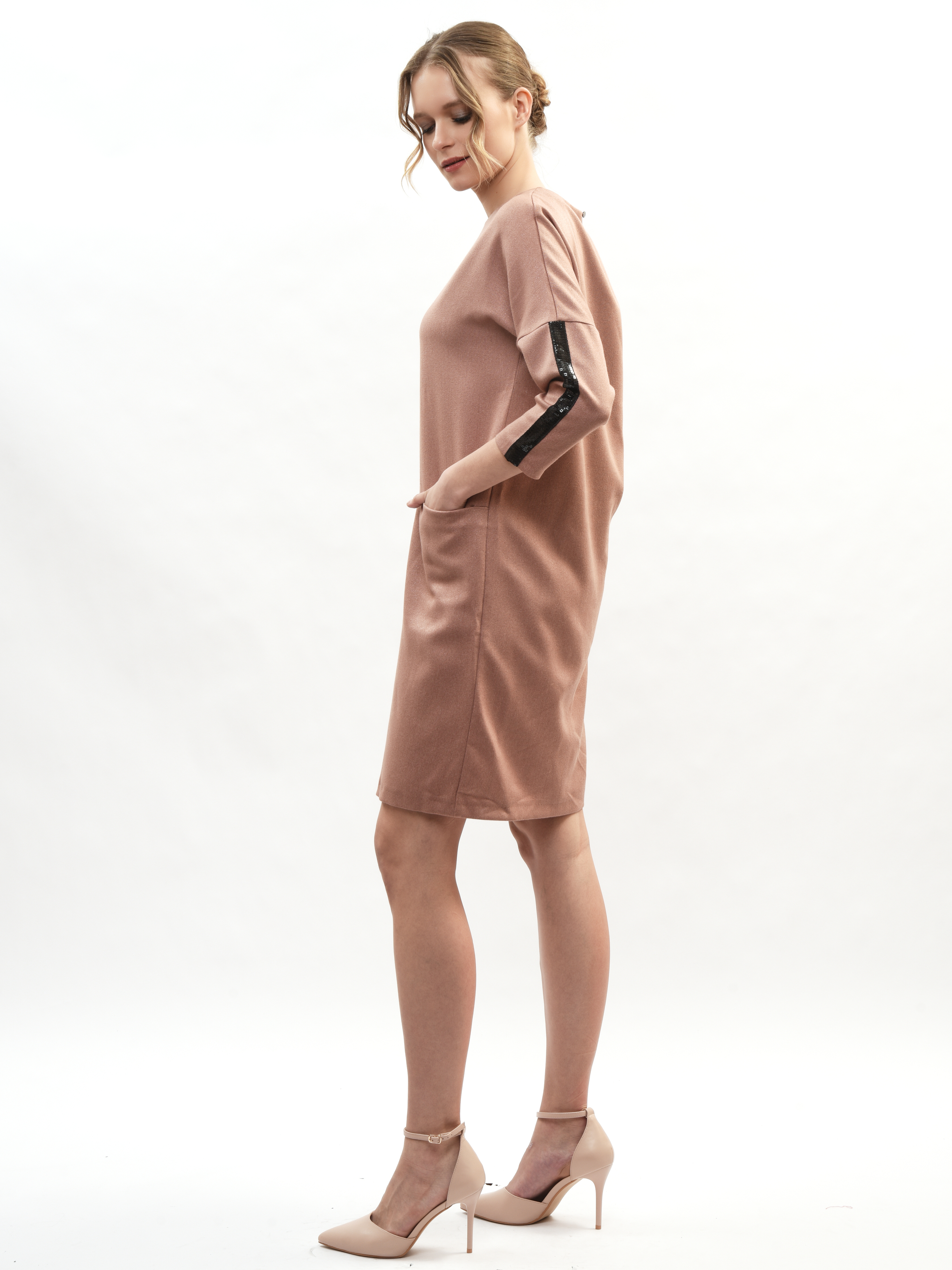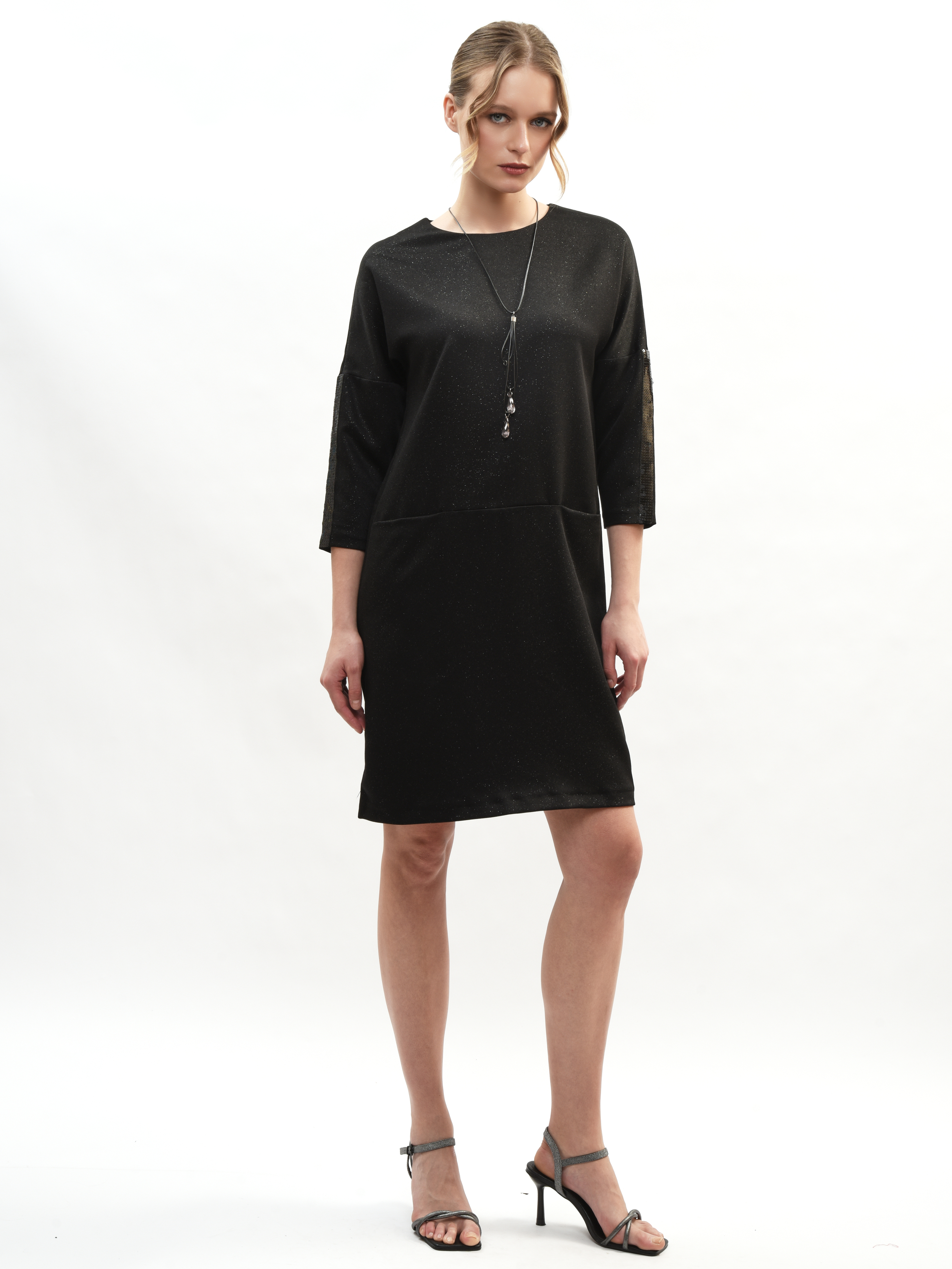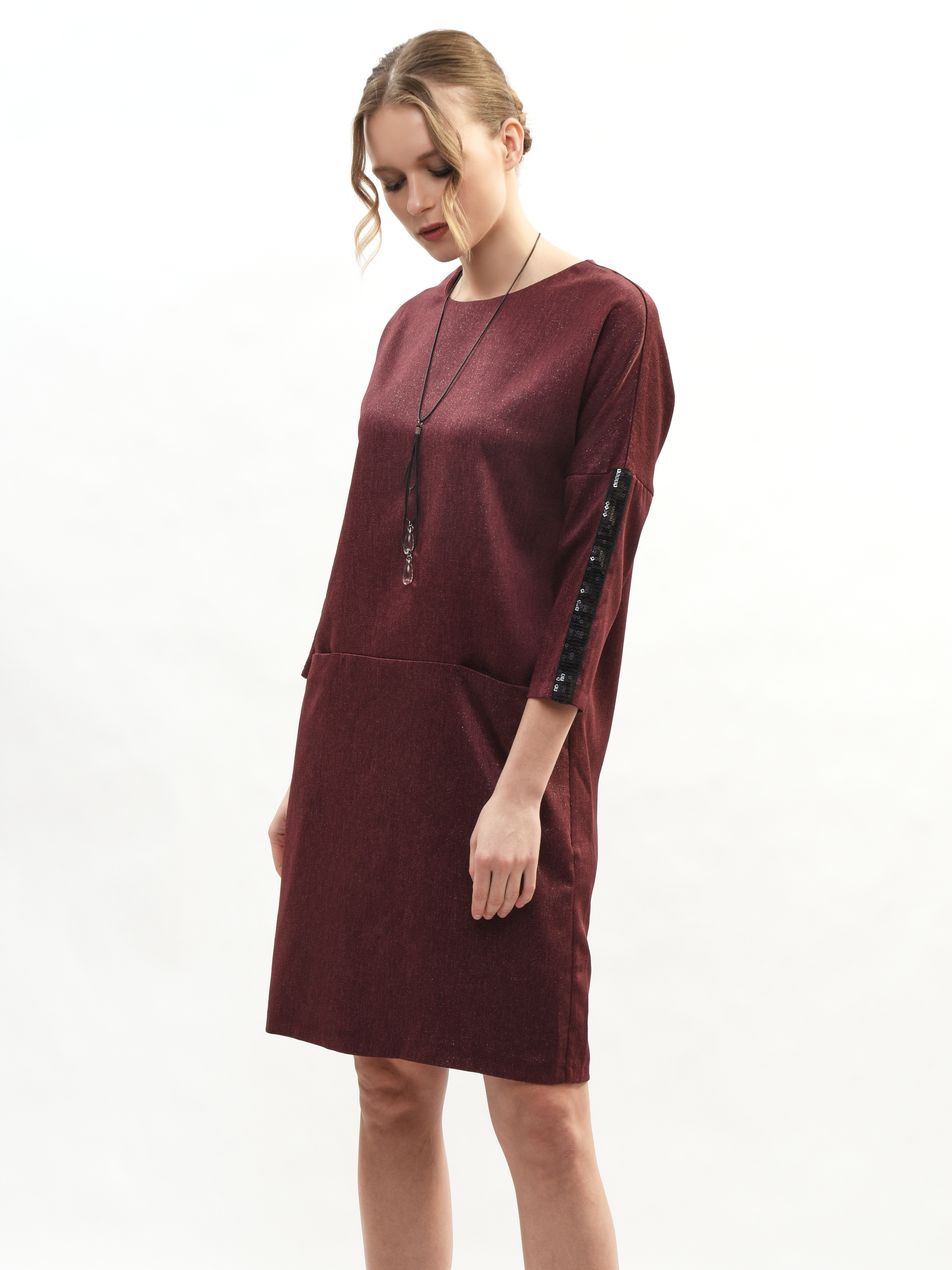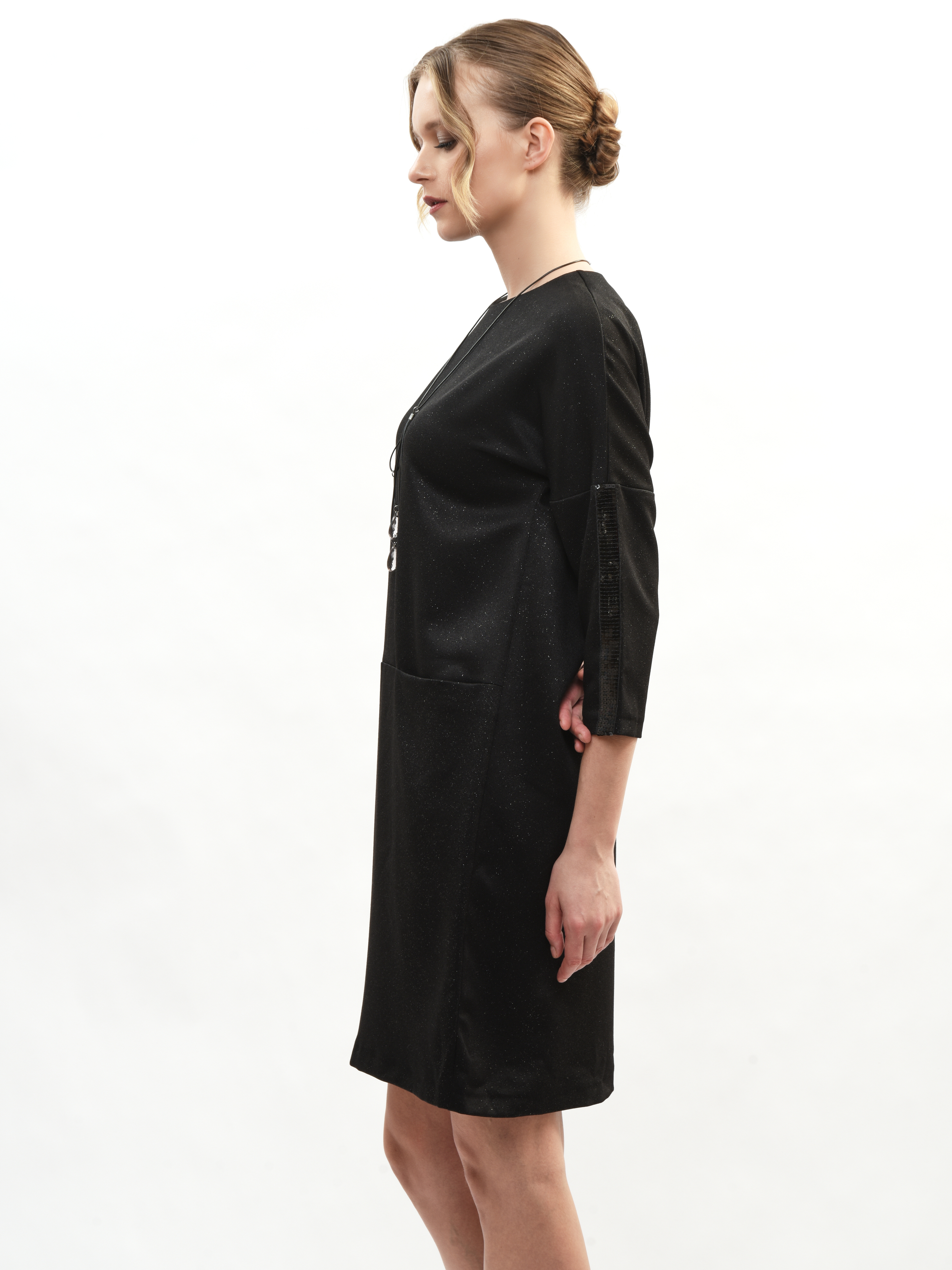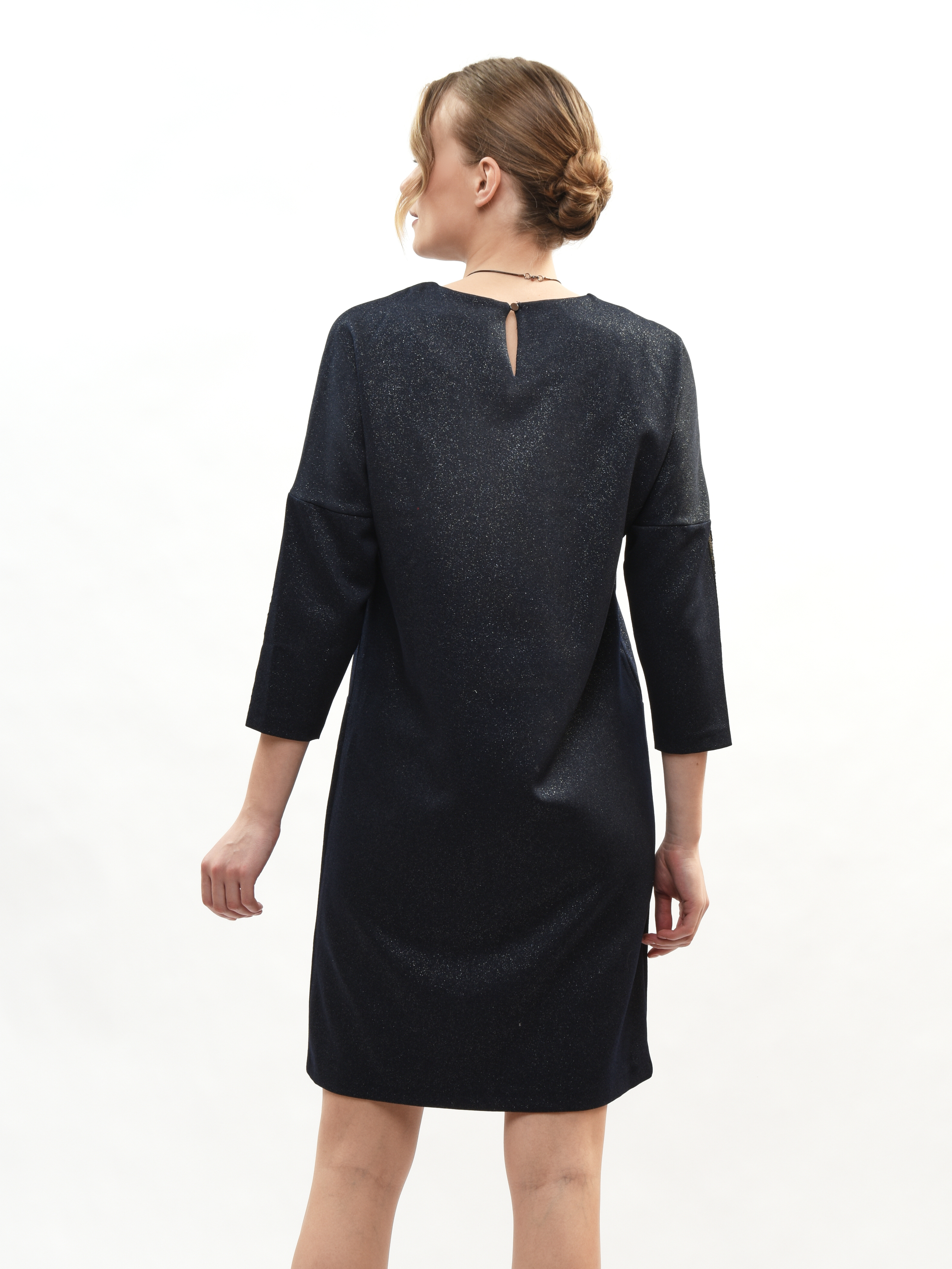 Платье прямого кроя – ваш идеальный спутник в создании элегантного образа! Круглая горловина подчеркивает красоту шеи, а рукава три четверти придают нотку романтики. Глубокие карманы удобны и практичны. Это платье станет вашим любимым выбором для повседневных прогулок и вечерних встреч. Элегантность, комфорт и стиль в каждой детали!