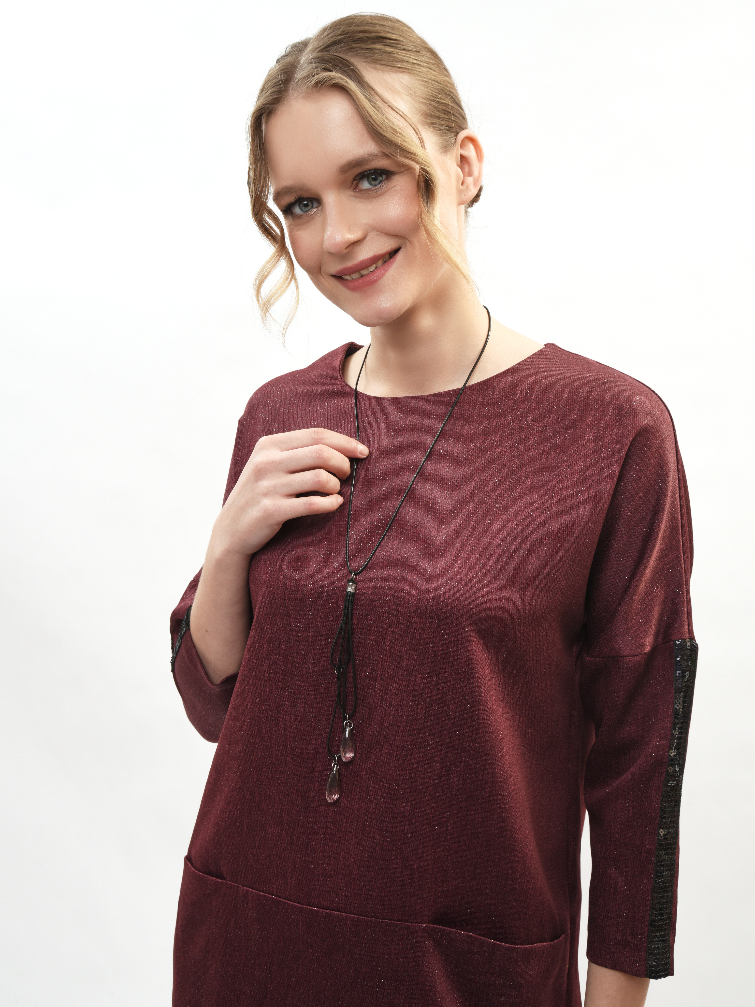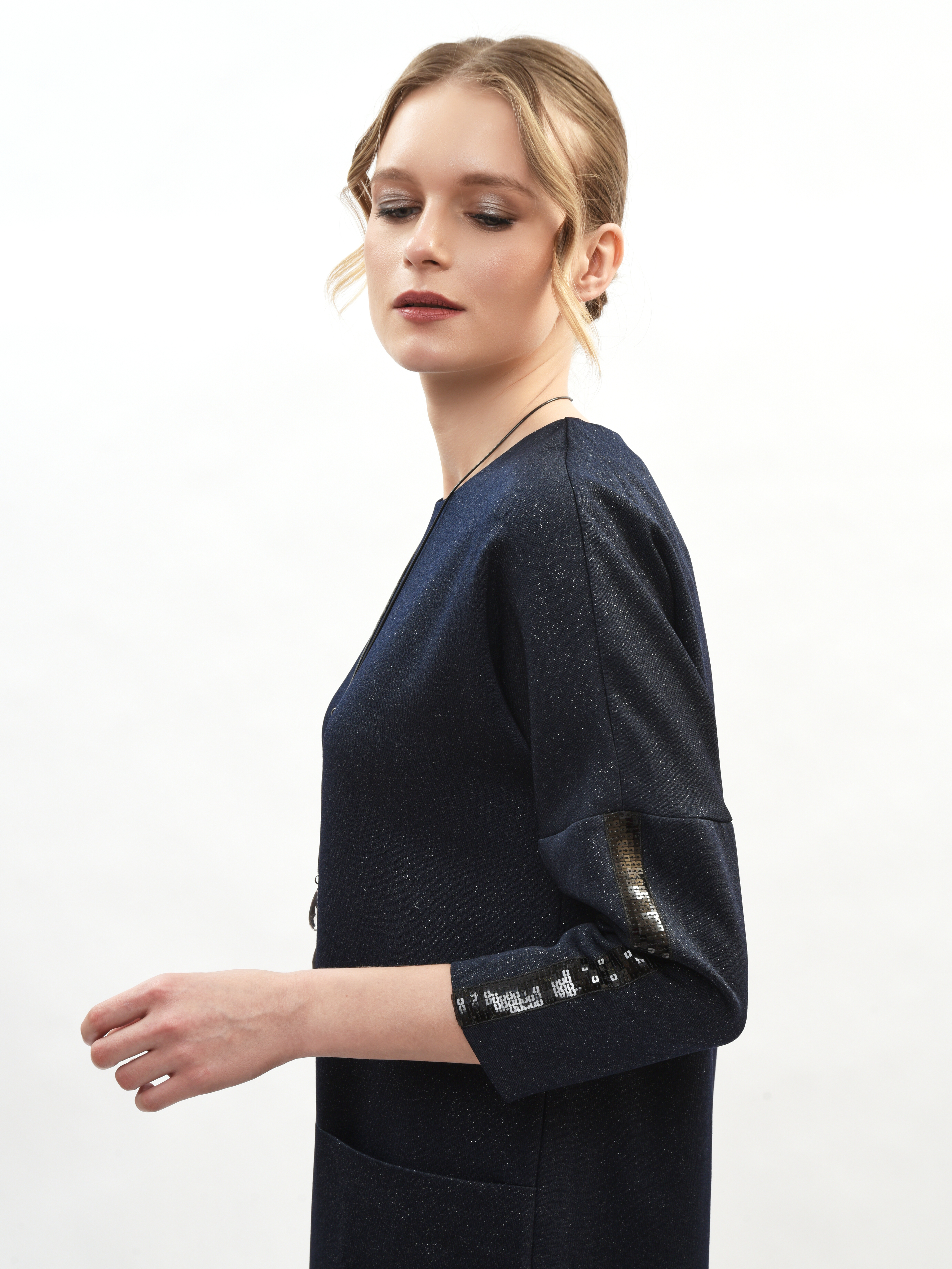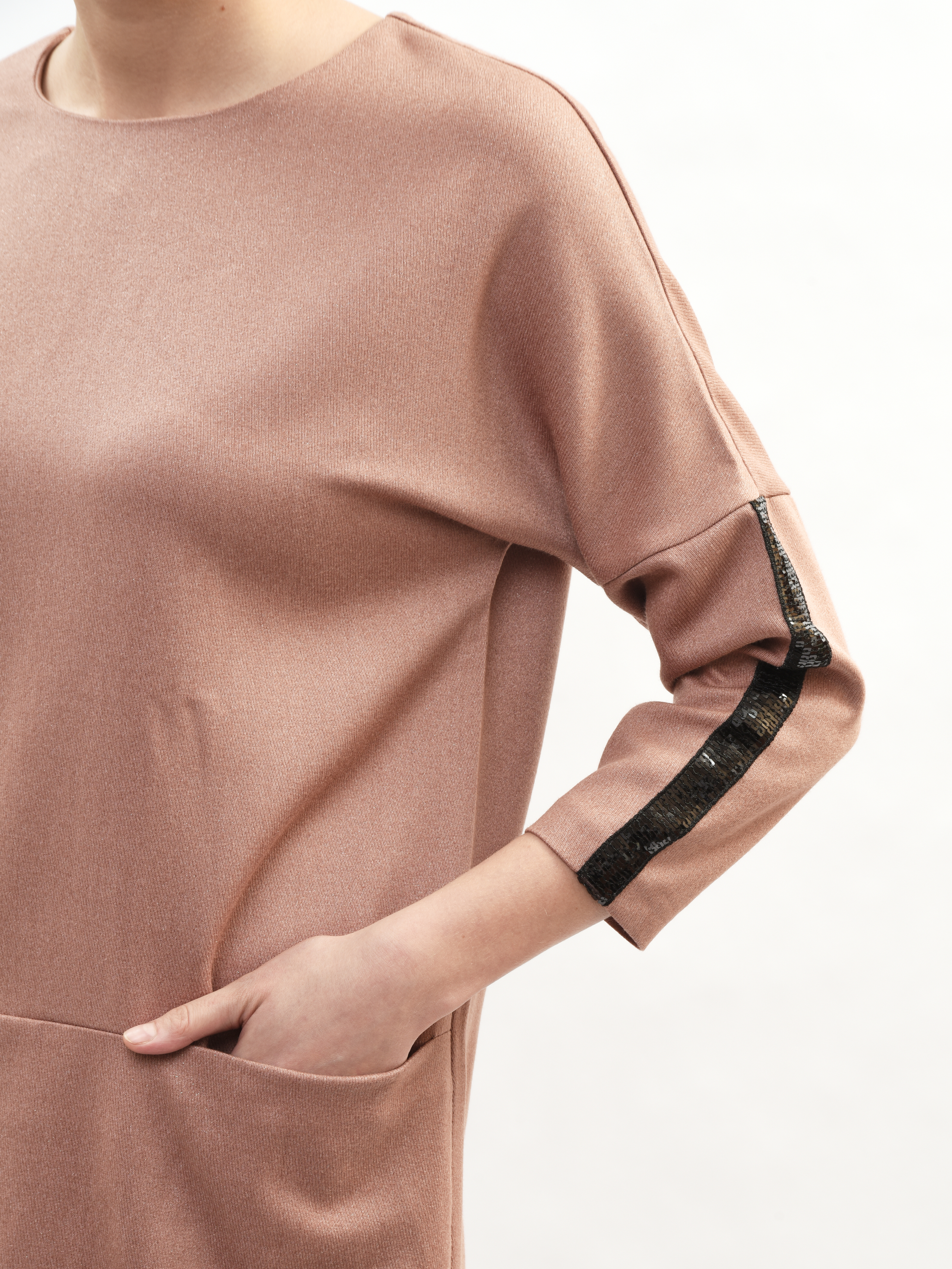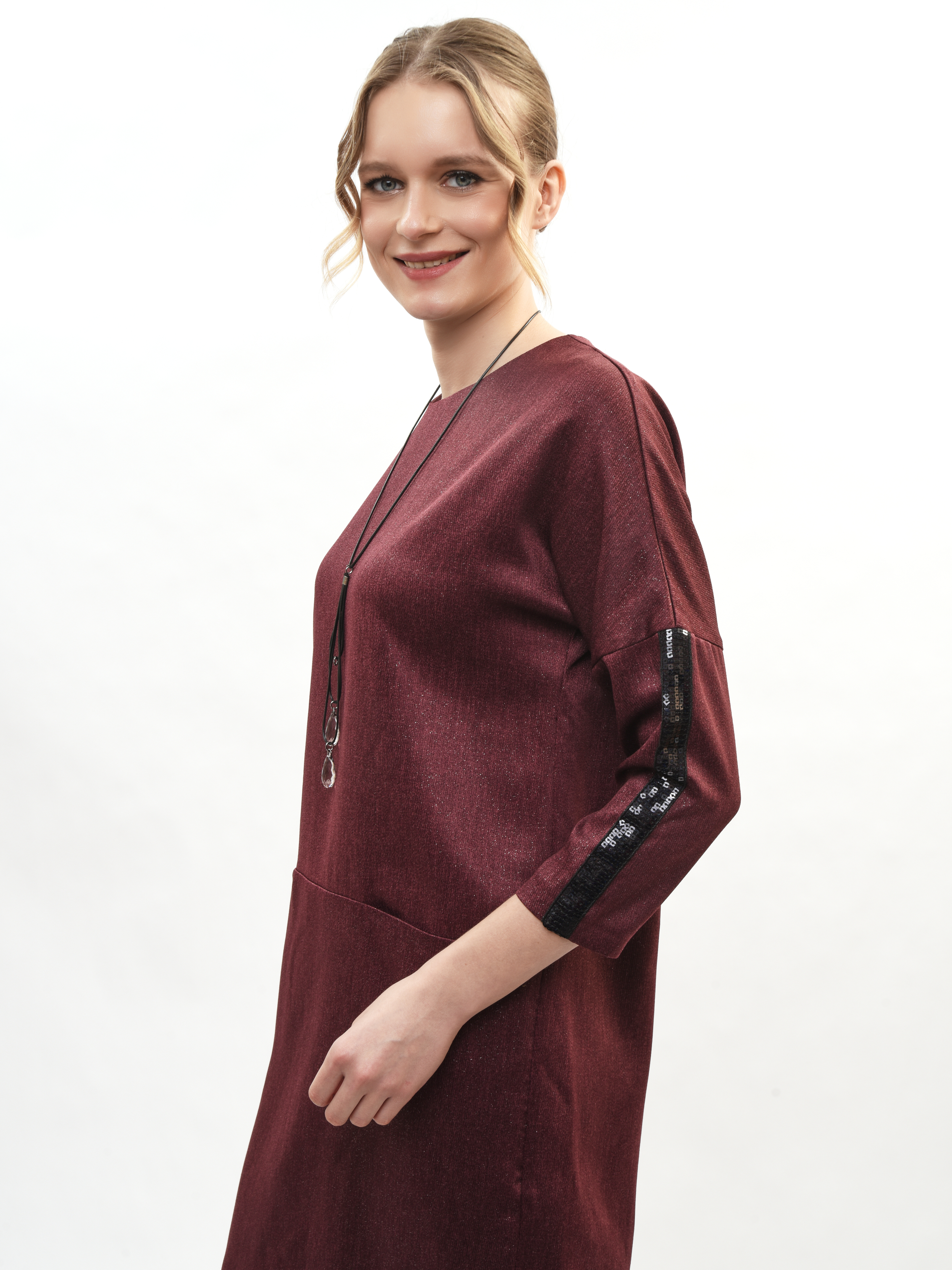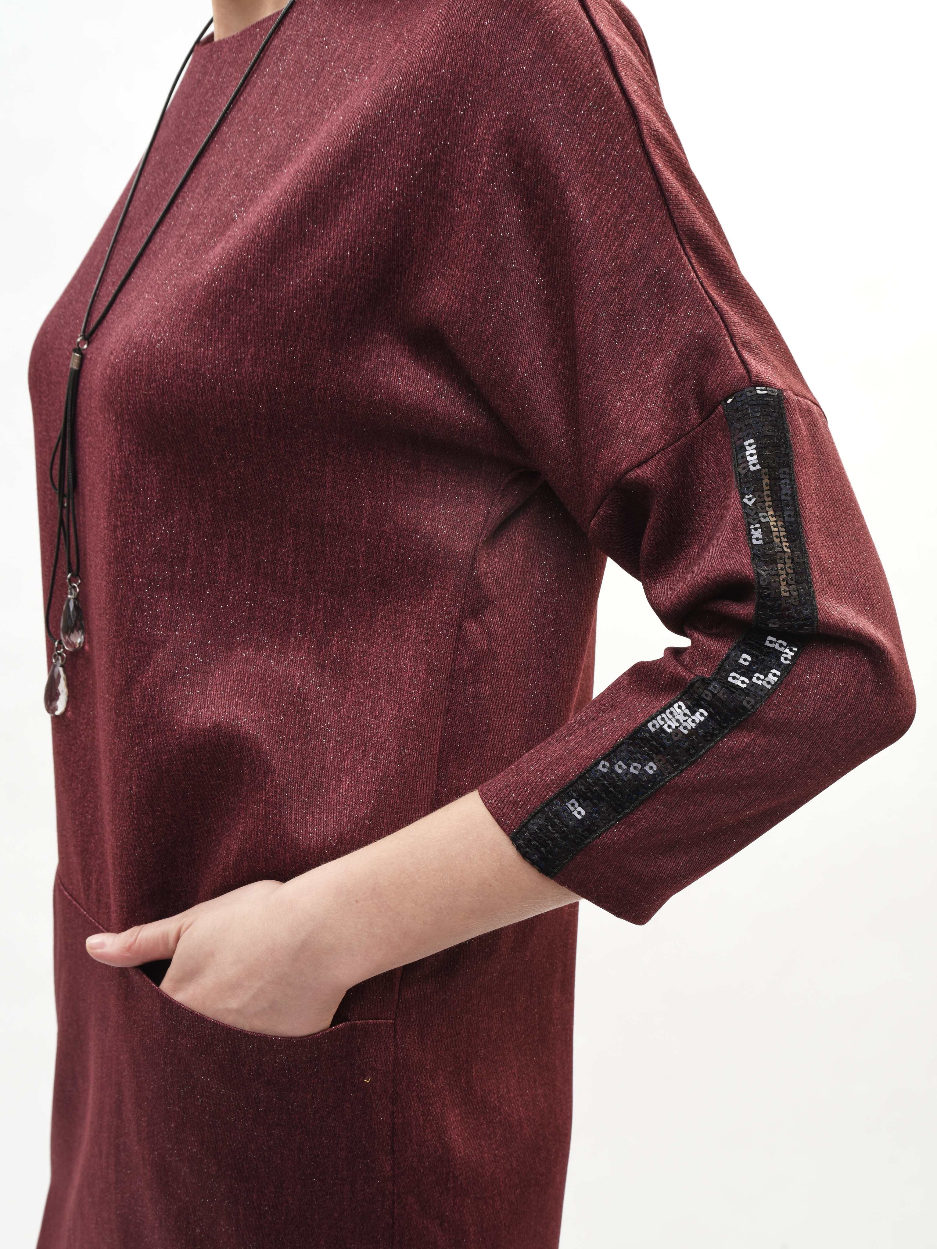 Платье прямого кроя – ваш идеальный спутник в создании элегантного образа! Круглая горловина подчеркивает красоту шеи, а рукава три четверти придают нотку романтики. Глубокие карманы удобны и практичны. Это платье станет вашим любимым выбором для повседневных прогулок и вечерних встреч. Элегантность, комфорт и стиль в каждой детали!