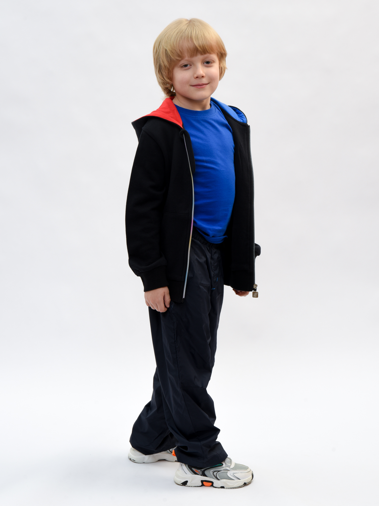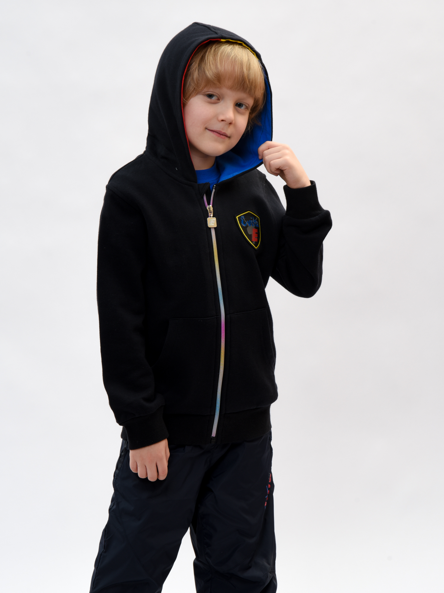 Толстовка для мальчика – идеальный выбор для стильных и активных малышей! Плотный трикотаж 100% хлопка гарантирует комфорт и свободу движений, а также долговечность изделия. Яркий капюшон с оригинальной цветным акцентом станет настоящим хитом сезона, подчеркивая индивидуальность вашего ребенка. Удобные карманы подарят дополнительное удобство и станут местом хранения мелких игрушек или сладостей. Идеальный комплект к любым джинсам и брюкам!