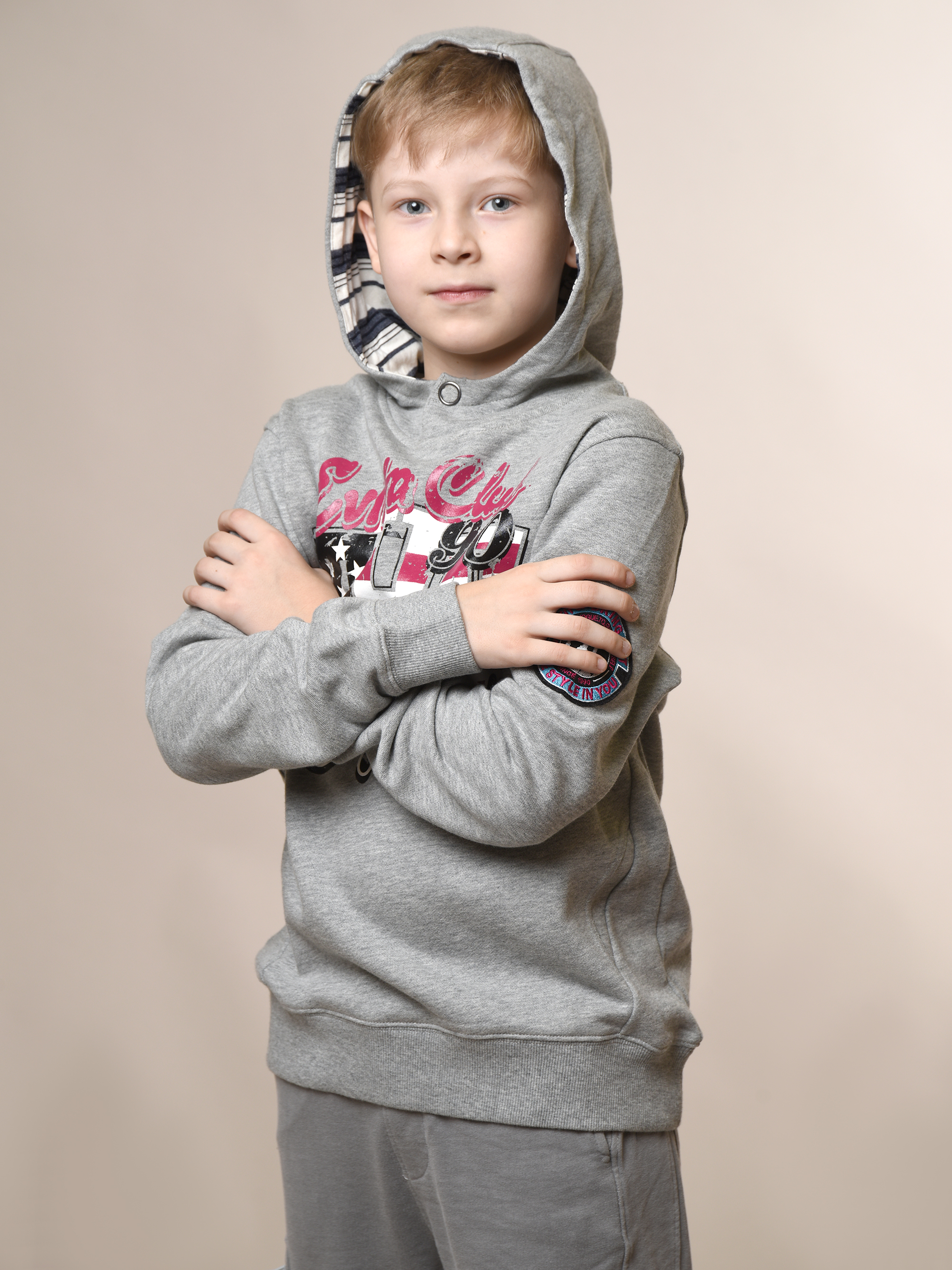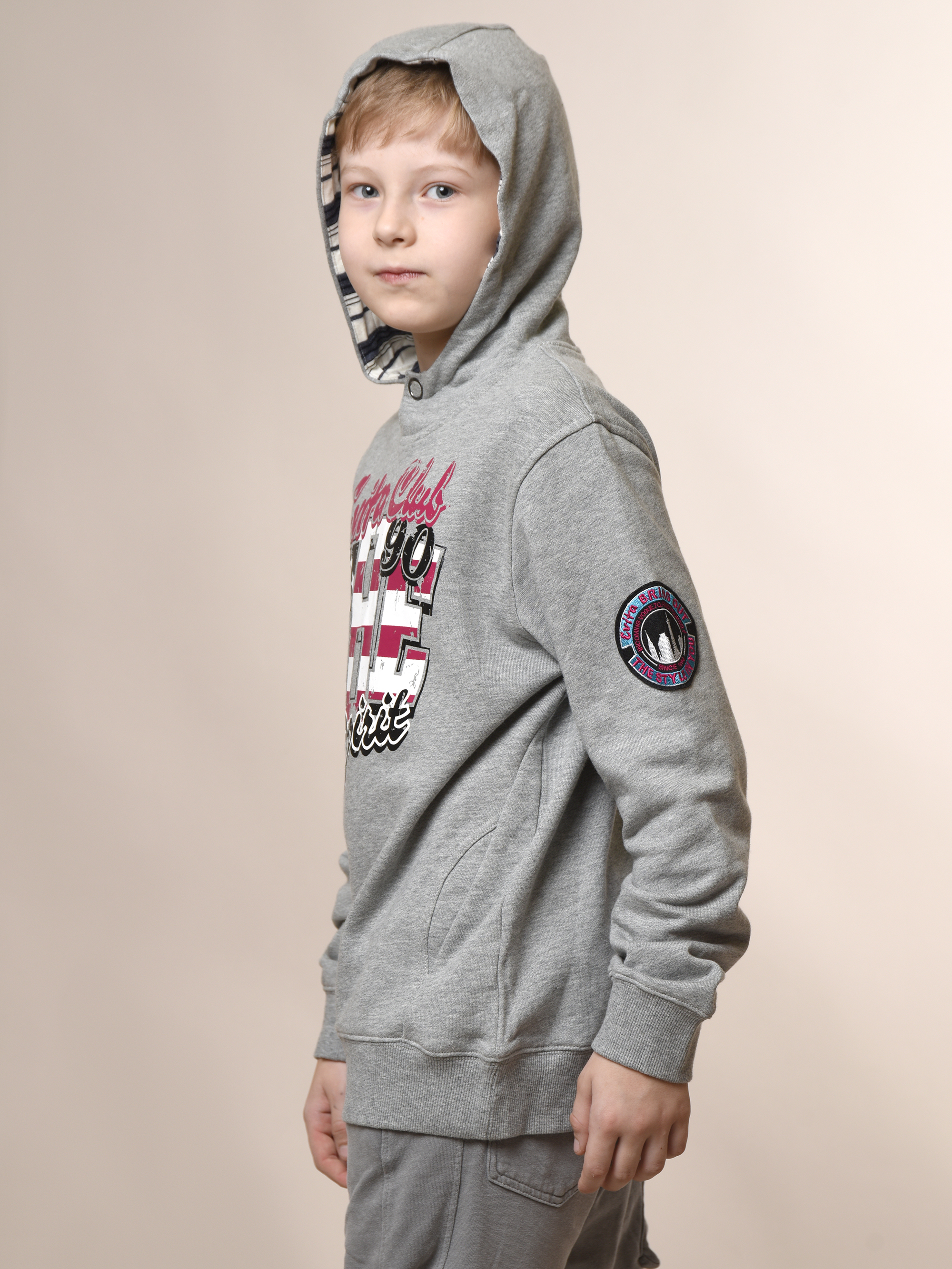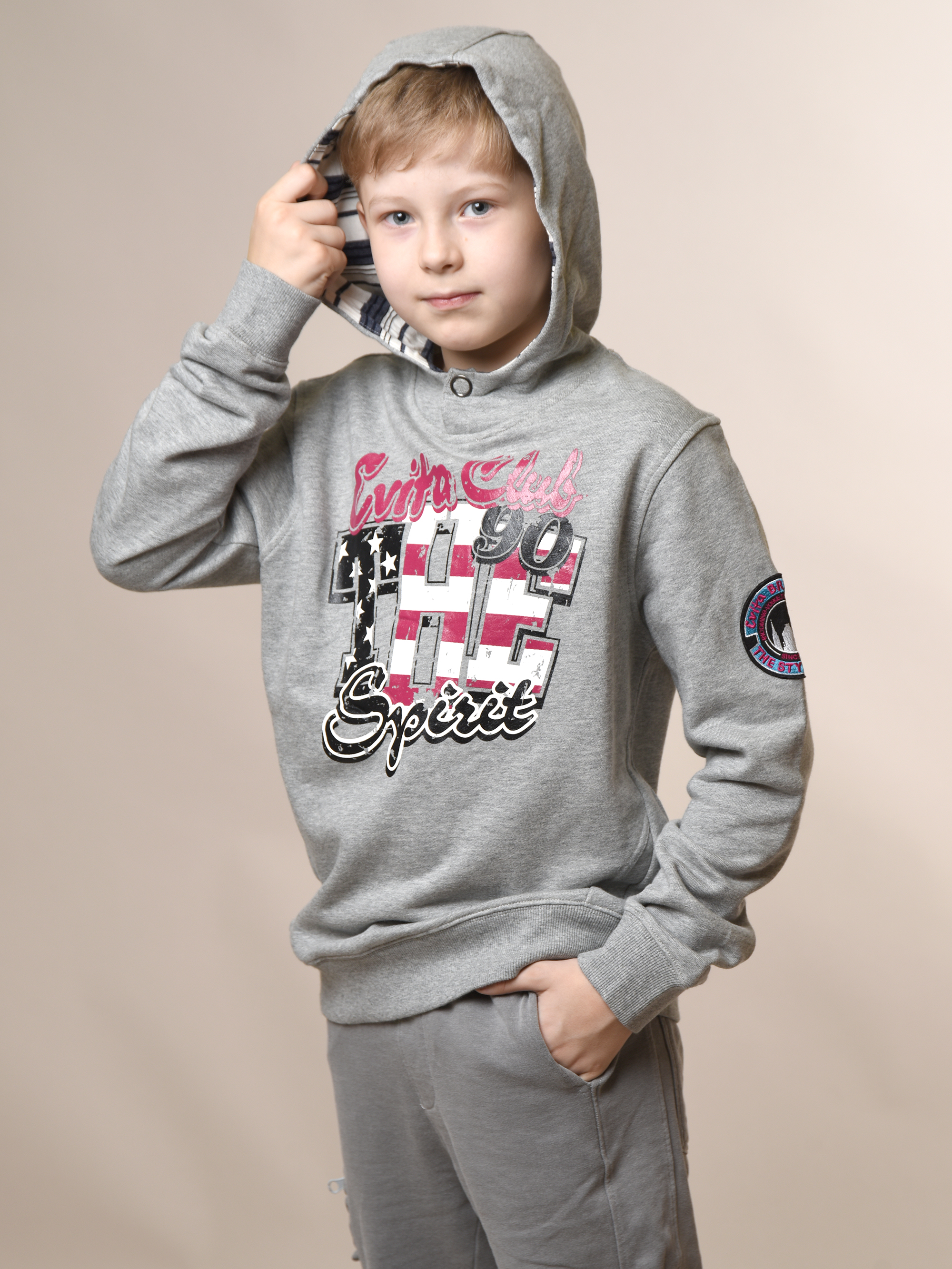 Мальчику обязательно понравится эта стильная толстовка! Удобная, модная и невероятно практичная - идеальный выбор для любого случая. Длинные рукава завершаются декоративной деталью и эластичной резинкой, также выполненной из трикотажа. Глубокий капюшон на кнопке дополнен яркой полосатой подкладкой. Прямой крой и крупный яркий принт подчеркнут индивидуальность малыша. Трикотаж гипоаллергенен, легко стирается при 30°C.