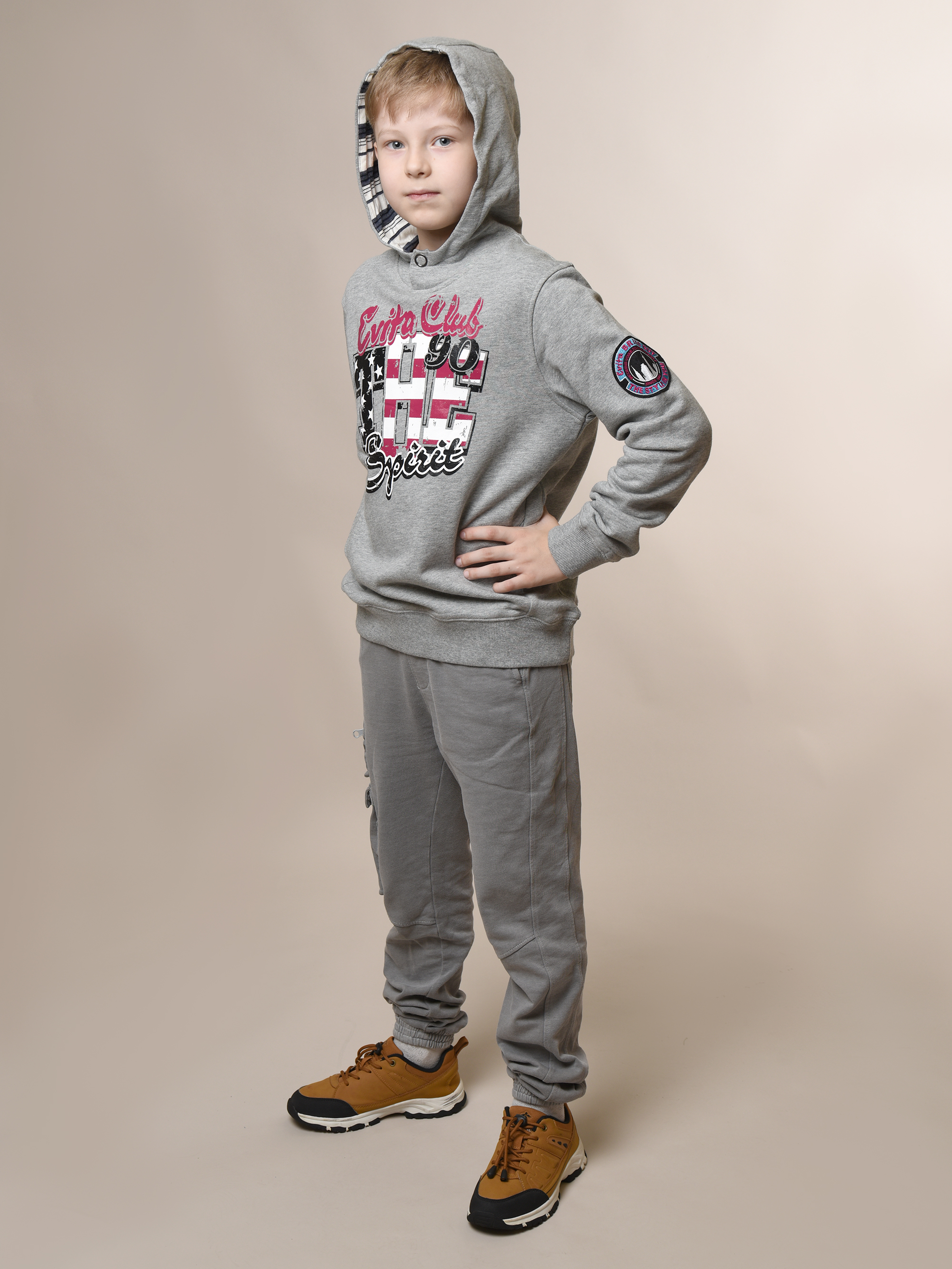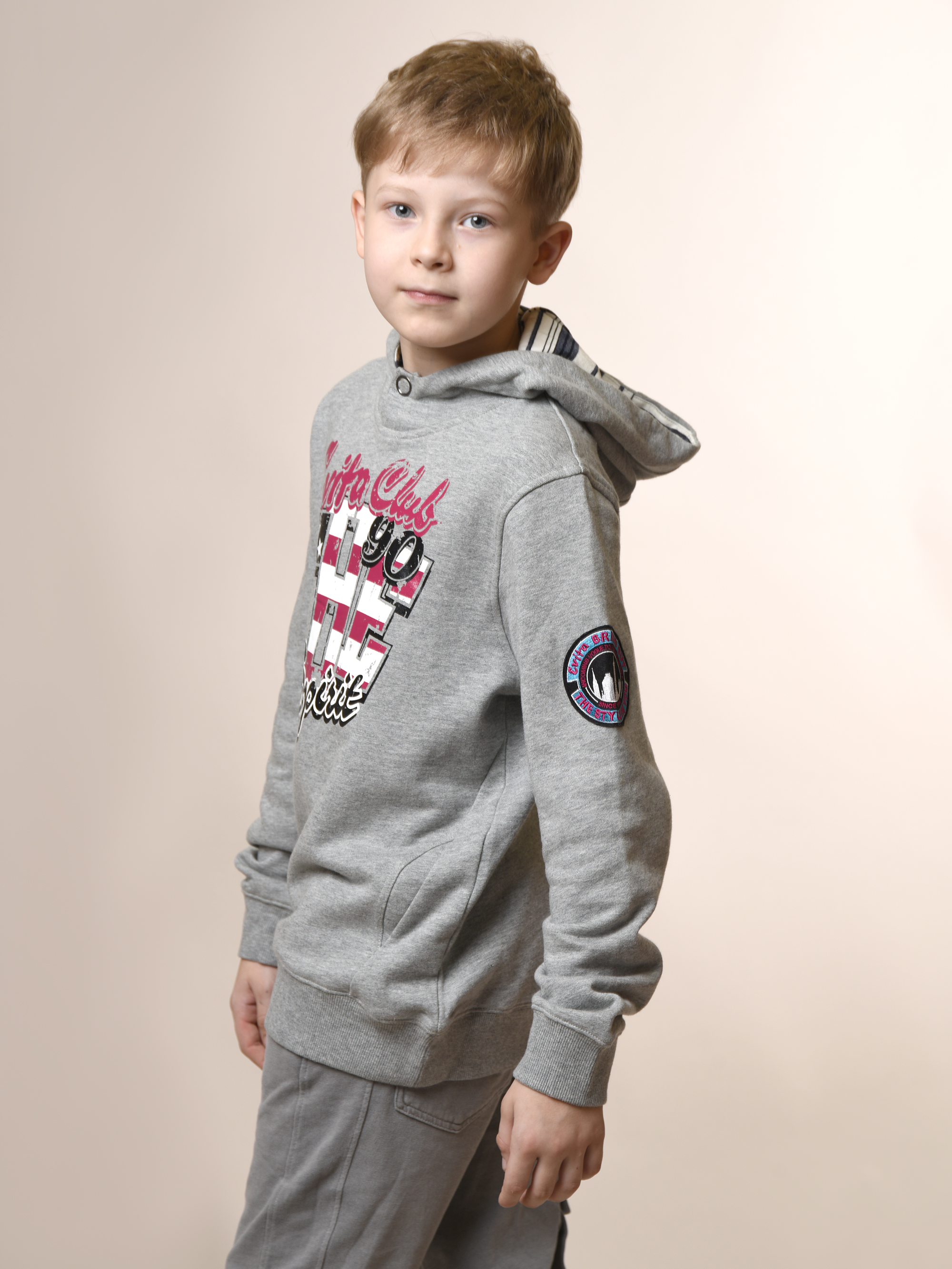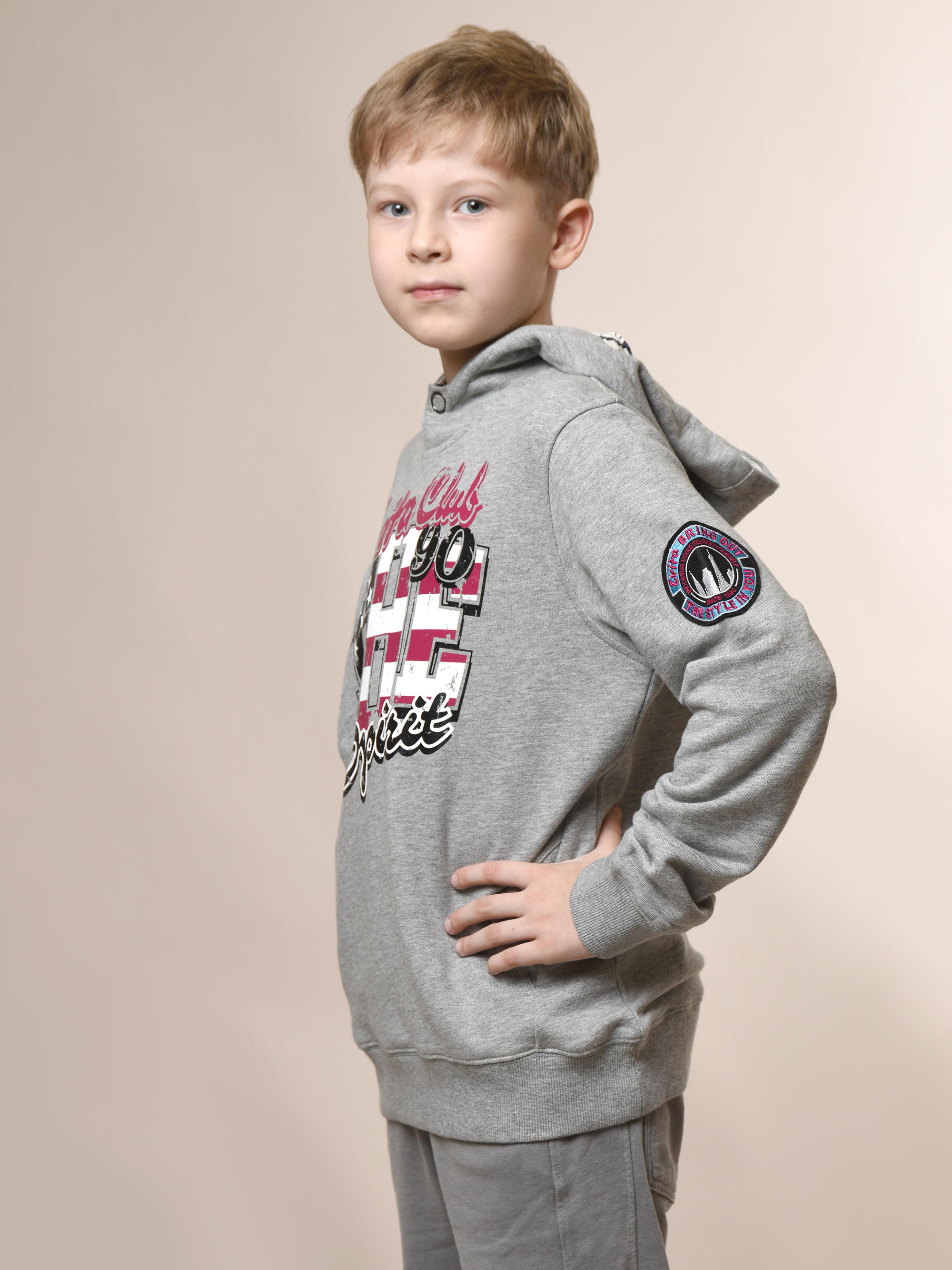 Мальчику обязательно понравится эта стильная толстовка! Удобная, модная и невероятно практичная - идеальный выбор для любого случая. Длинные рукава завершаются декоративной деталью и эластичной резинкой, также выполненной из трикотажа. Глубокий капюшон на кнопке дополнен яркой полосатой подкладкой. Прямой крой и крупный яркий принт подчеркнут индивидуальность малыша. Трикотаж гипоаллергенен, легко стирается при 30°C.